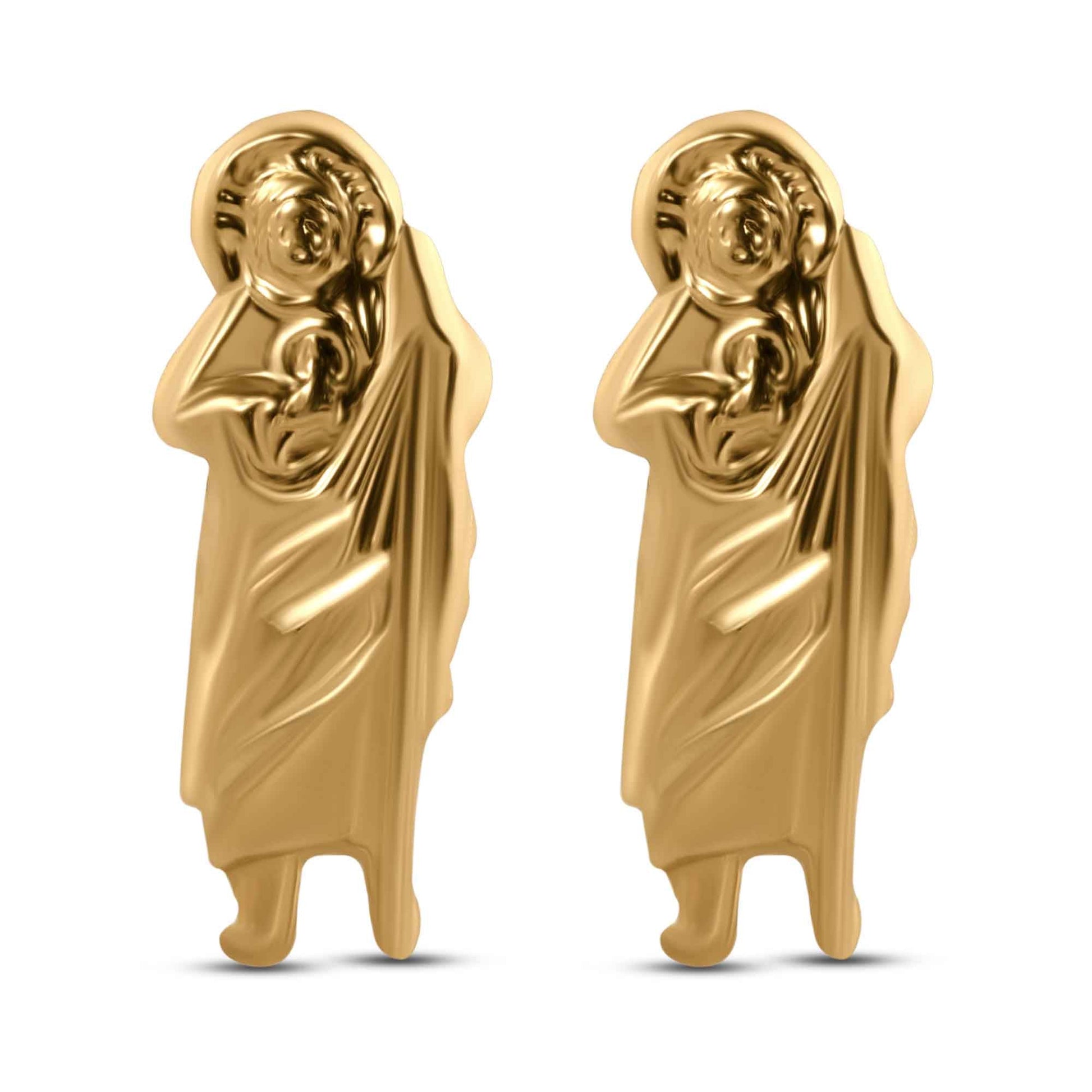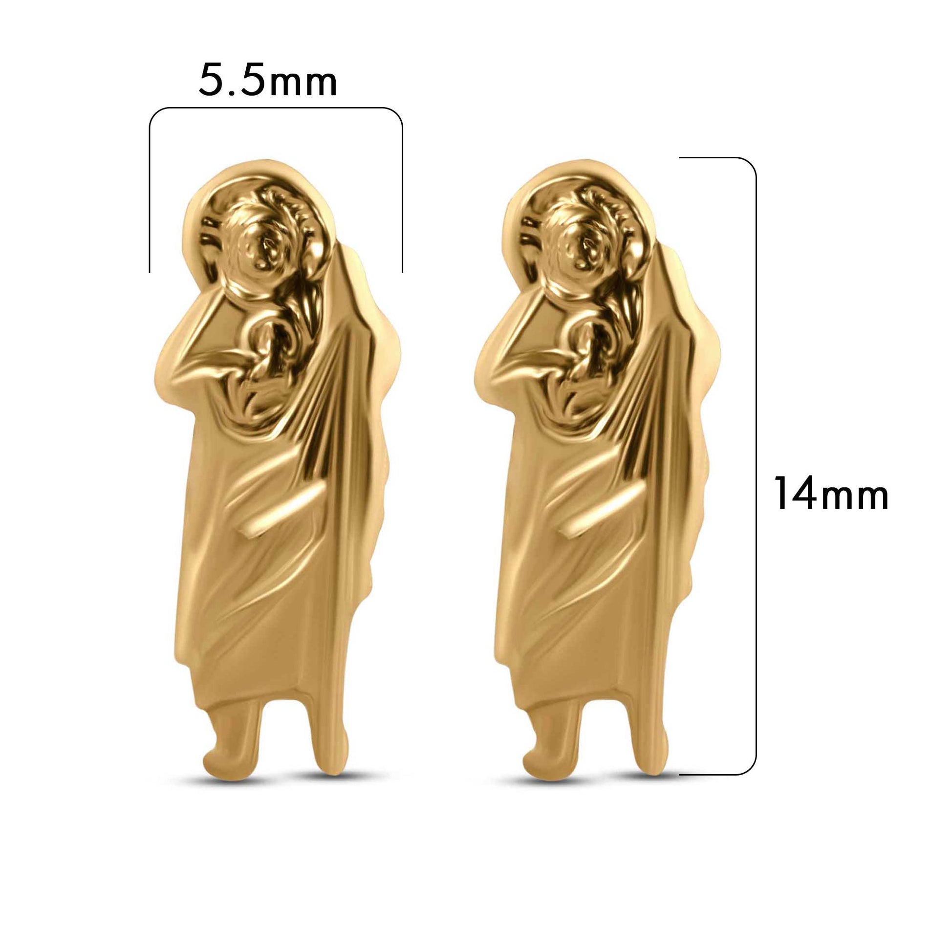 Elevate your jewelry collection with our 14 Karat Yellow Saint Jude Screw Back Earrings. Made of luxurious 14 karat gold, these earrings feature intricate screw back designs and depict Saint Jude, the patron saint of hopeless causes. Add a touch of elegance and faith to any outfit with these exquisite earrings.