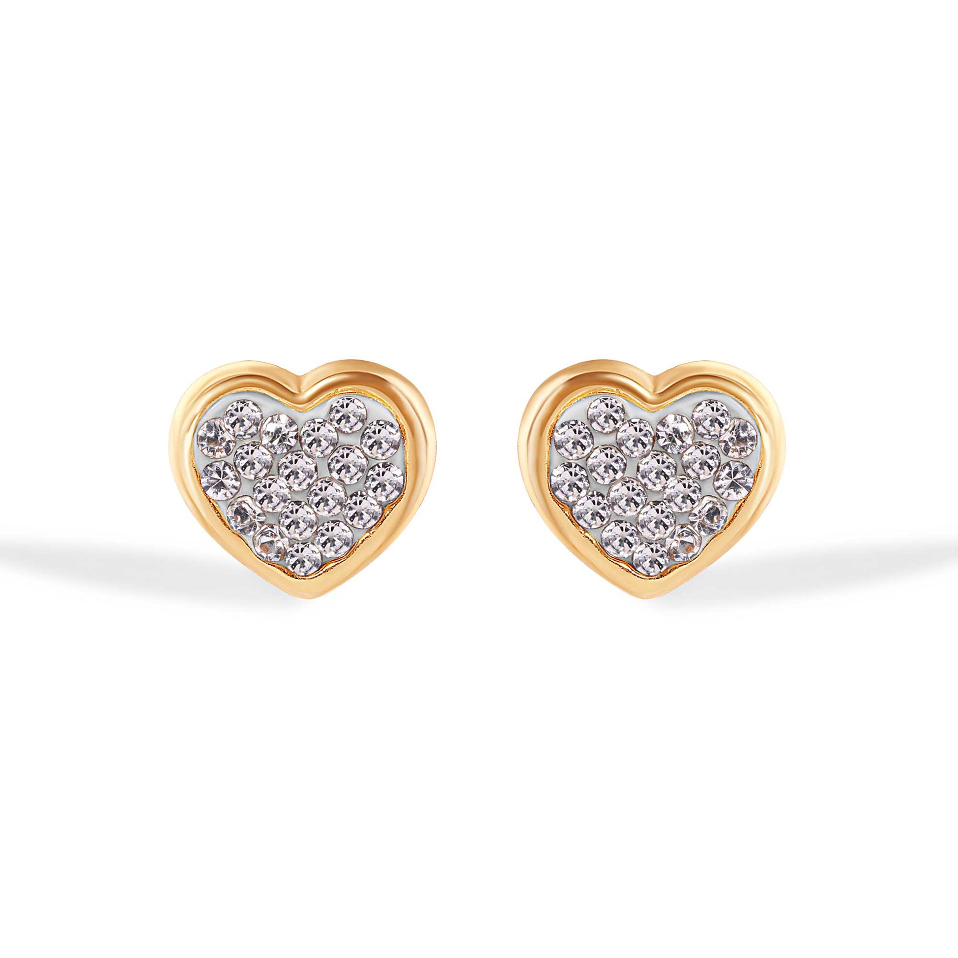 14E00440. - 14 Karat Heart Clear CZ Screw Back Earrings