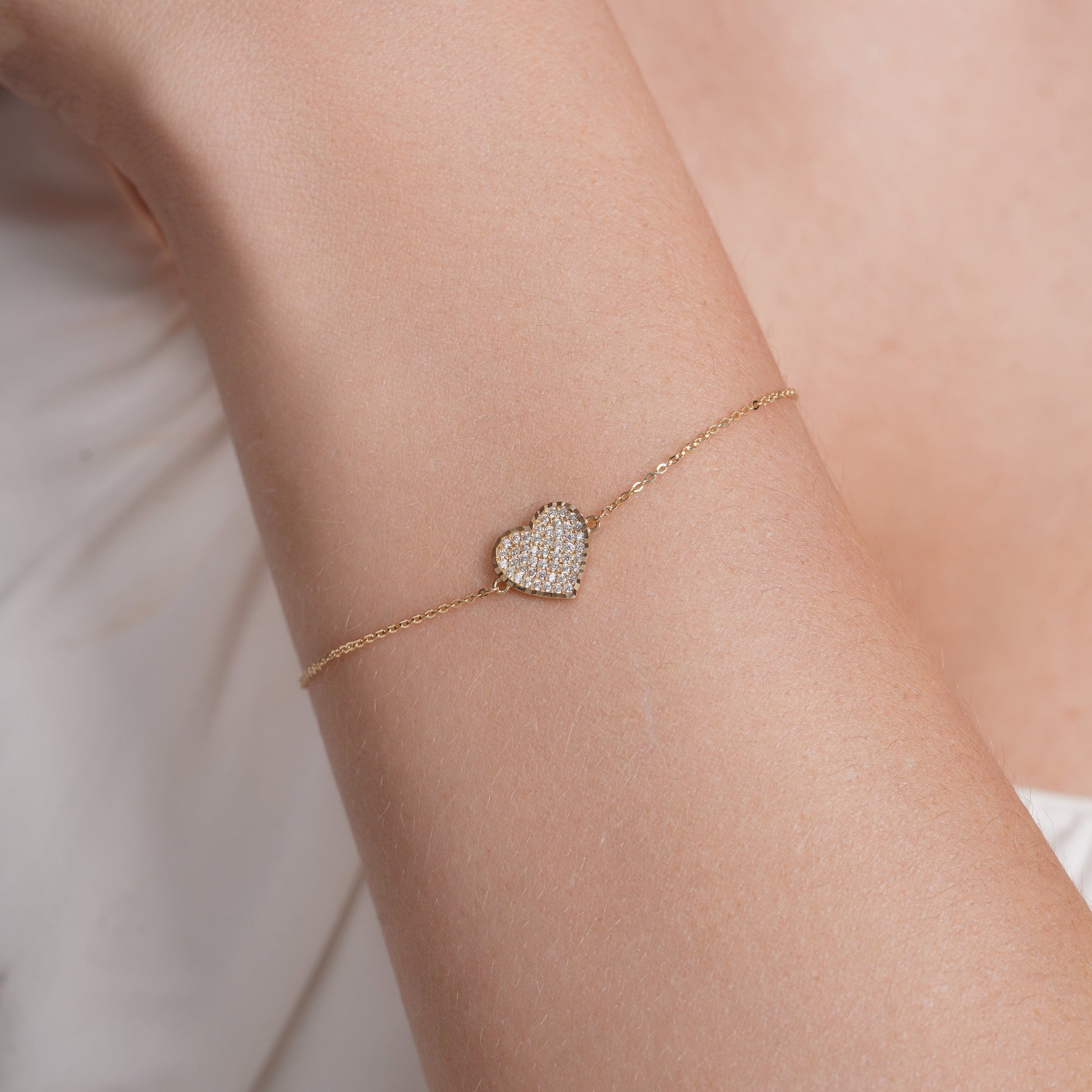 Elevate your jewelry collection with this exquisite 14 Karat Yellow Gold bracelet featuring a diamond-cut heart charm adorned with cubic zirconia stones. The adjustable design ensures a perfect fit for any wrist size, while the premium gold construction offers lasting beauty and value. This sophisticated piece transitions effortlessly from casual to formal occasions.