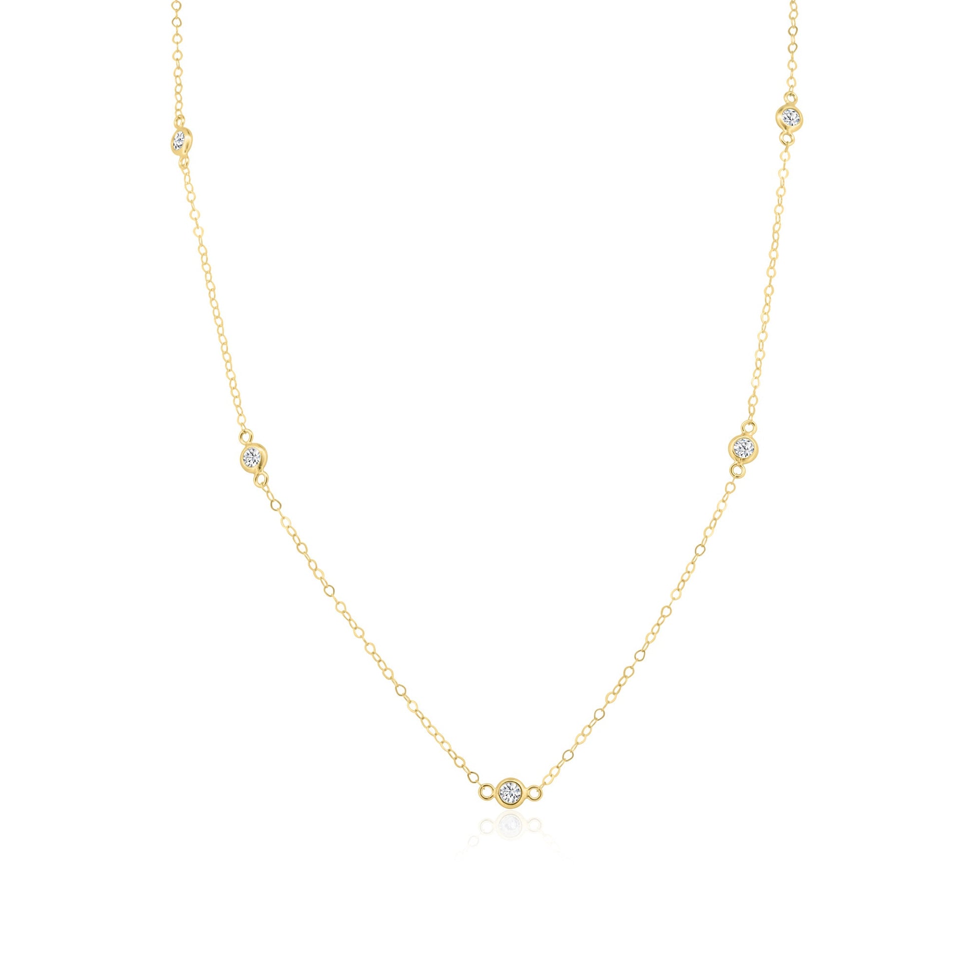 Crafted from high-quality 14 karat yellow gold, this necklace radiates a warm and luxurious glow that beautifully enhances any outfit. The clear CZ stones add a touch of brilliance and sophistication, creating a mesmerizing play of light.