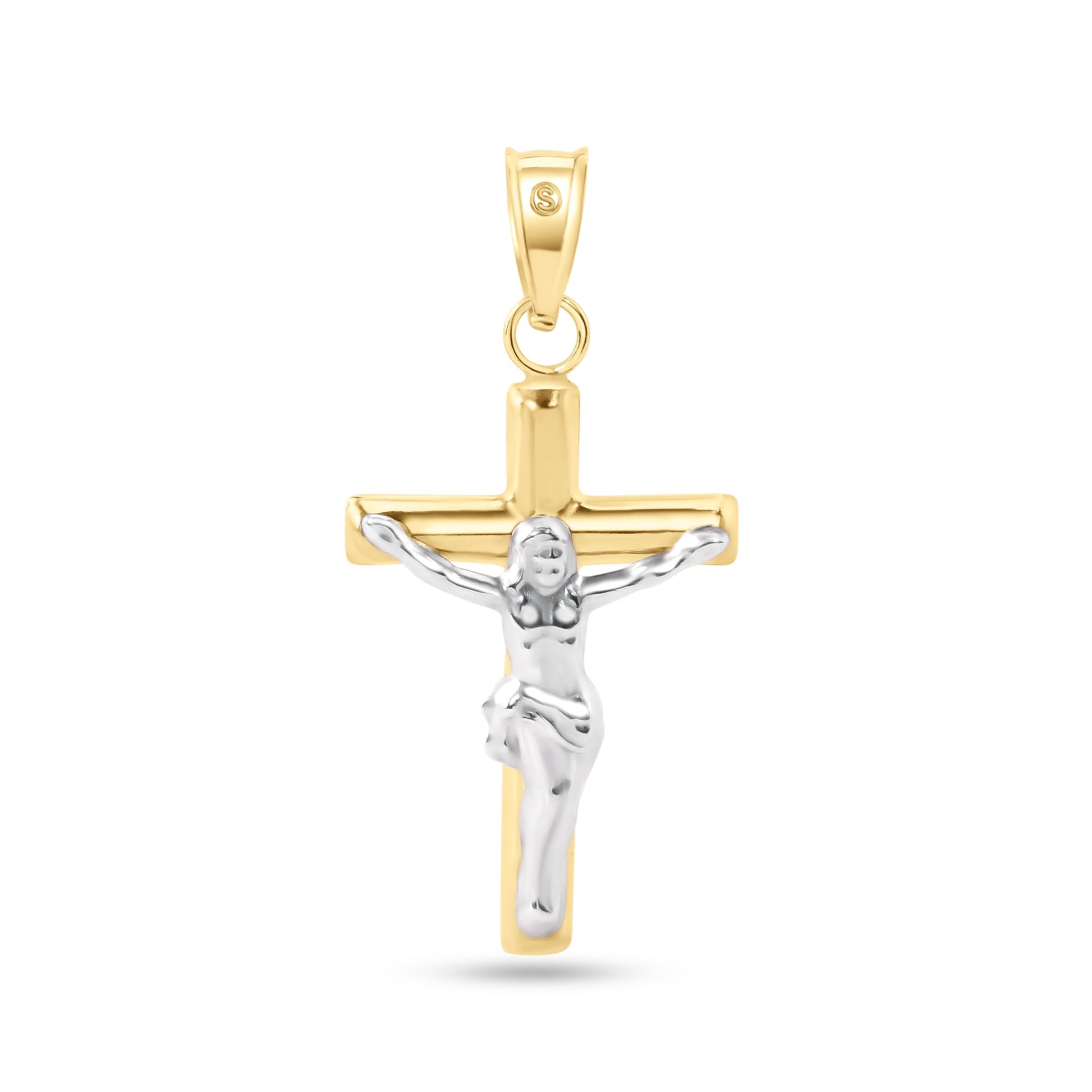 14P00084. - 14 Karat Yellow Gold 2 Sided Cross White Gold Jesus Hollow Tube Cross Pendant