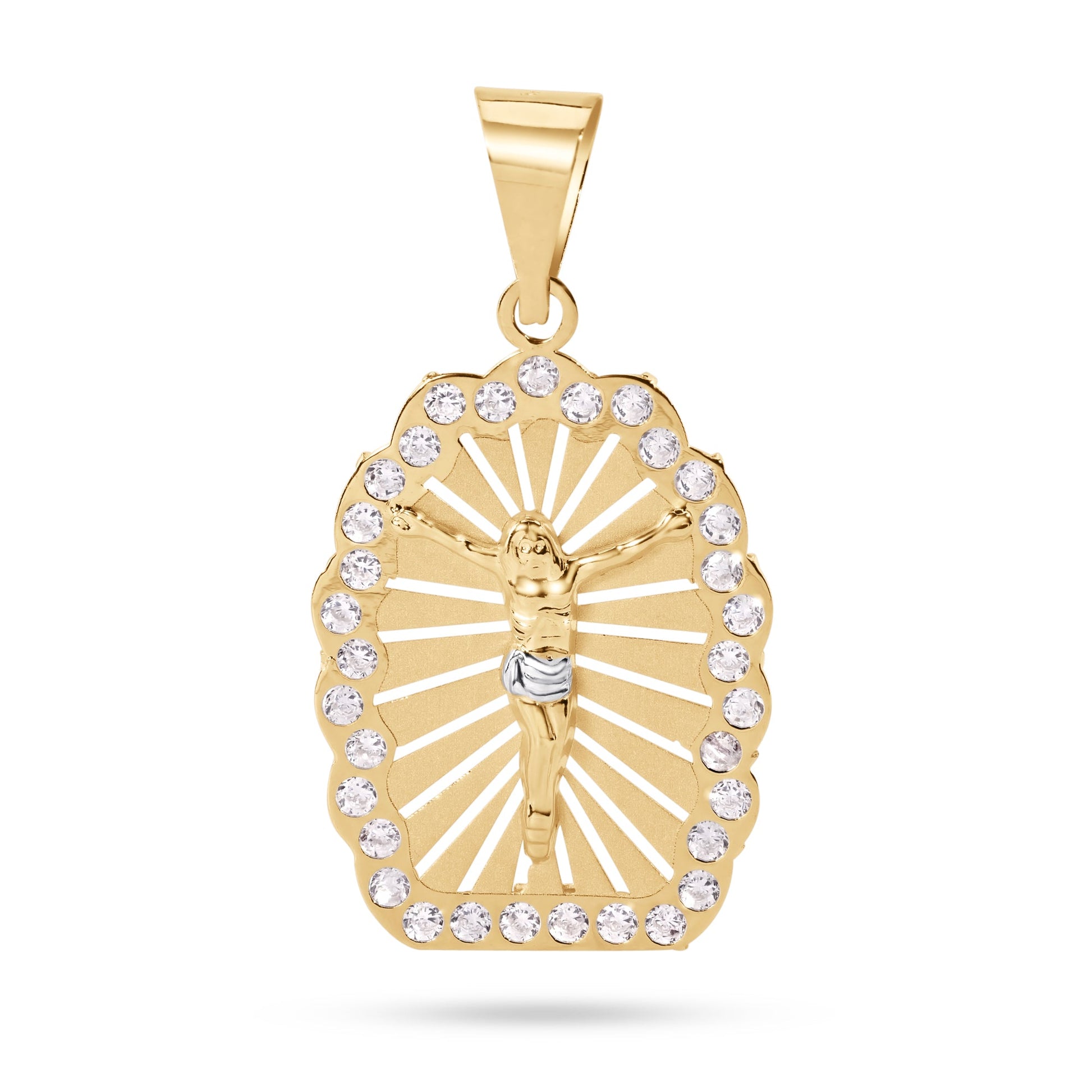 14P00105. - 14 Karat Yellow Gold 2 Tone 26mm Jesus Christ Clear CZ Pendant
