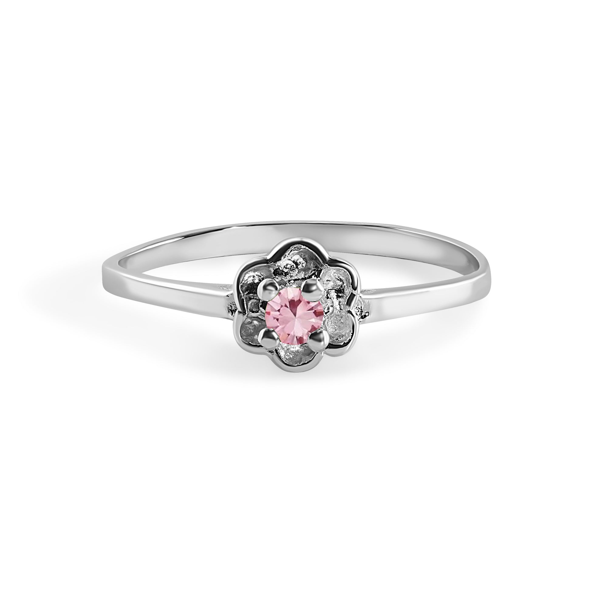 Rhodium Plated 925 Sterling Silver Dainty Birthstone Flower Ring- SPR00004