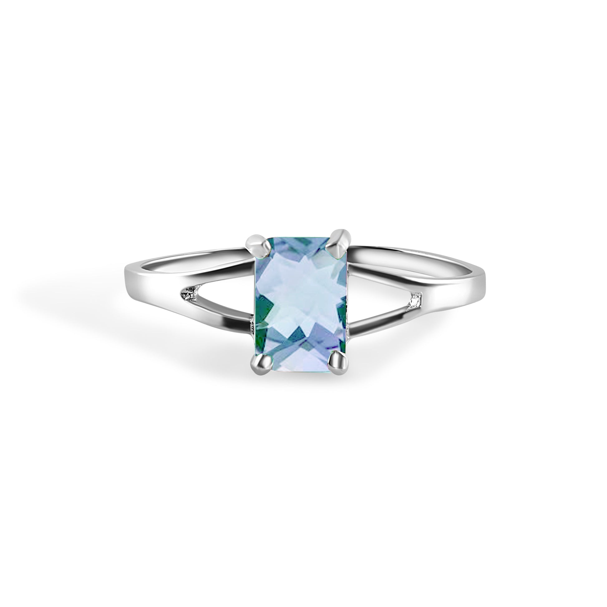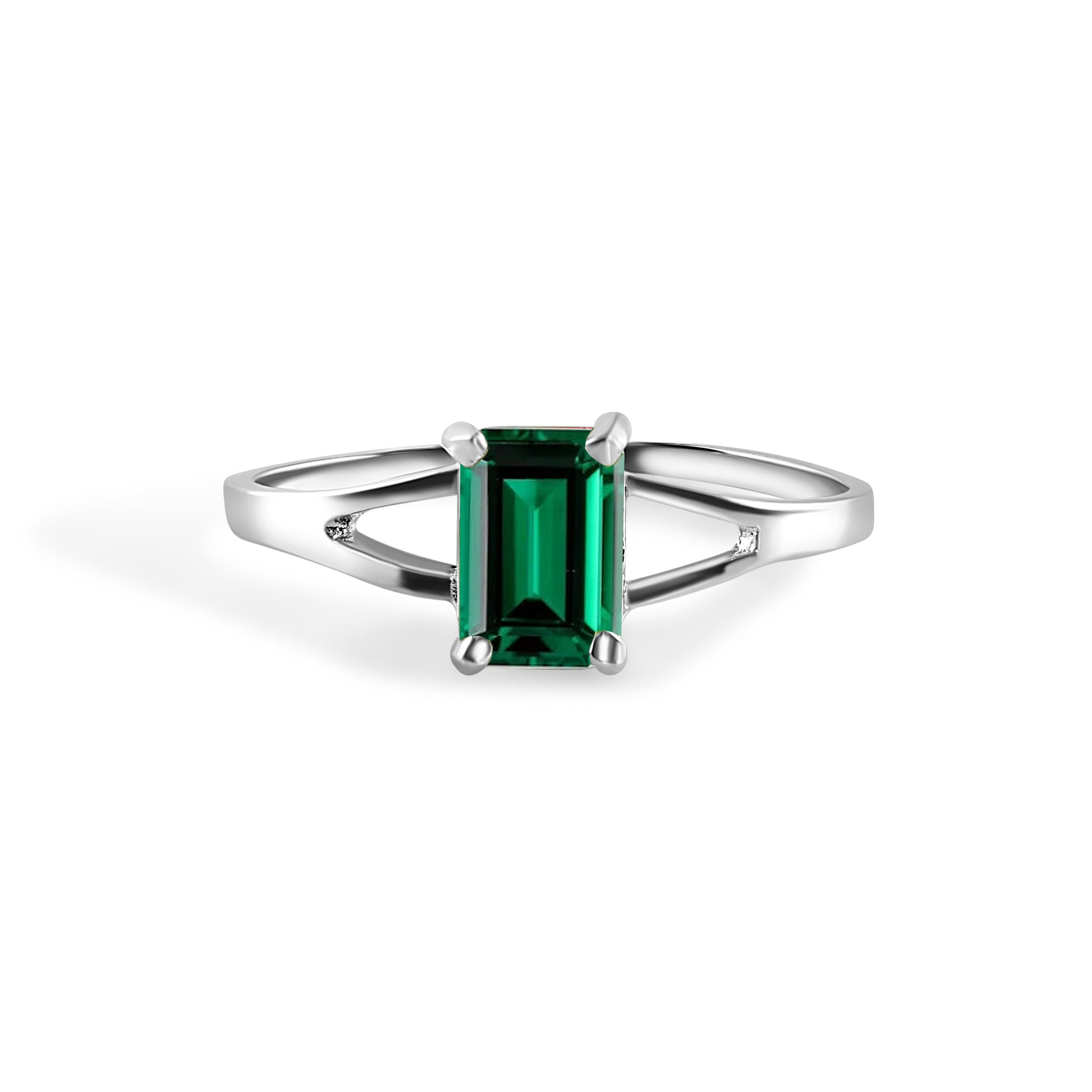 Rhodium Plated 925 Sterling Silver Emerald Cut Birthstone Ring- SPR00007