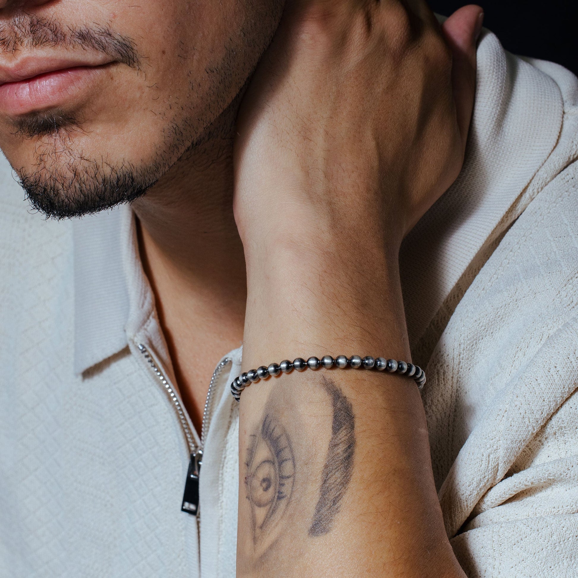 925 Sterling Gun Metal Finish Bead Bracelet 5mm - BSB0010