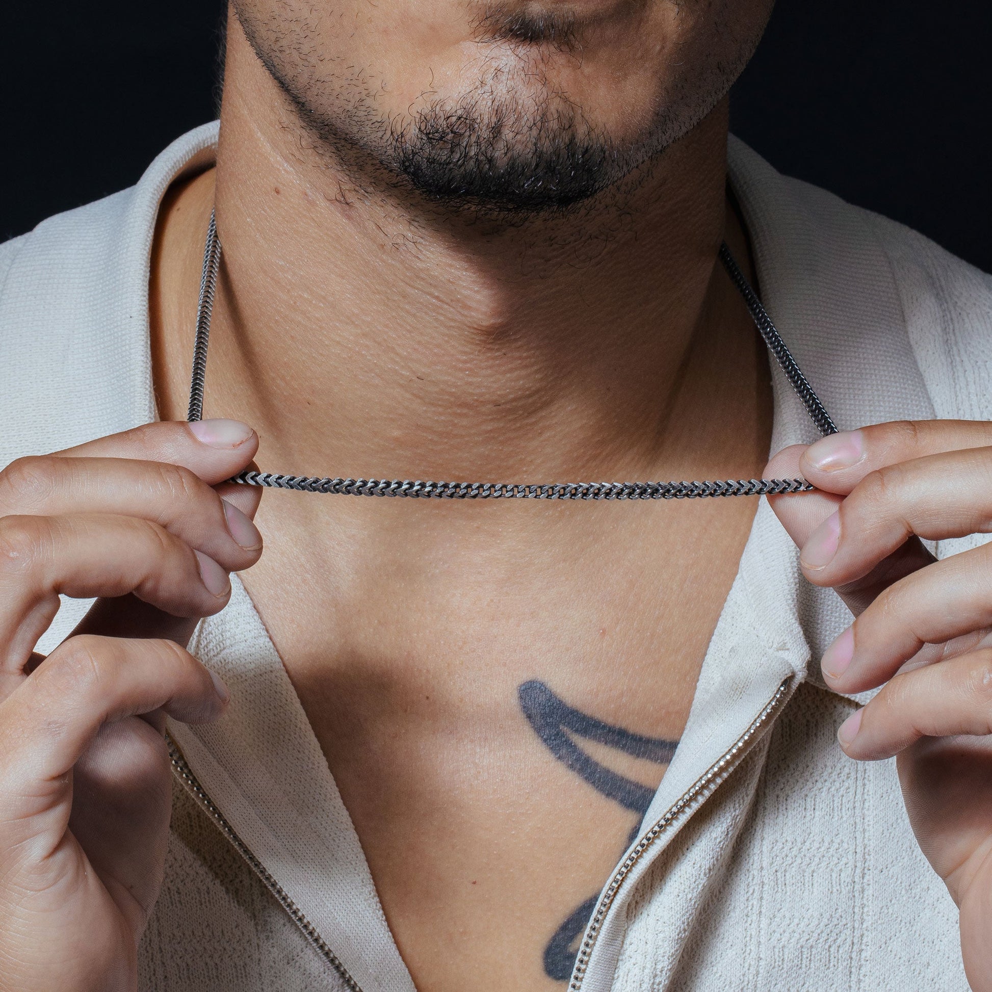 Crafted from high-quality 925 sterling silver, this Franco chain has been meticulously plated with a gun metal finish, giving it a sleek and contemporary look. The gun metal plating adds a touch of sophistication and uniqueness to the chain, setting it apart from traditional silver or gold options.