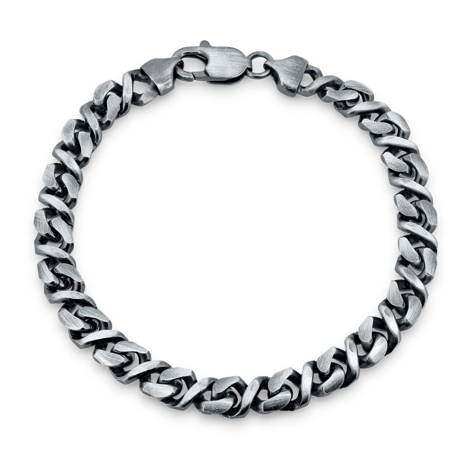 In summary, this bracelet combines the elegance of sterling silver with a unique dollar Cuban link design and gun metal plating, creating a striking piece of jewelry that is sure to capture attention.