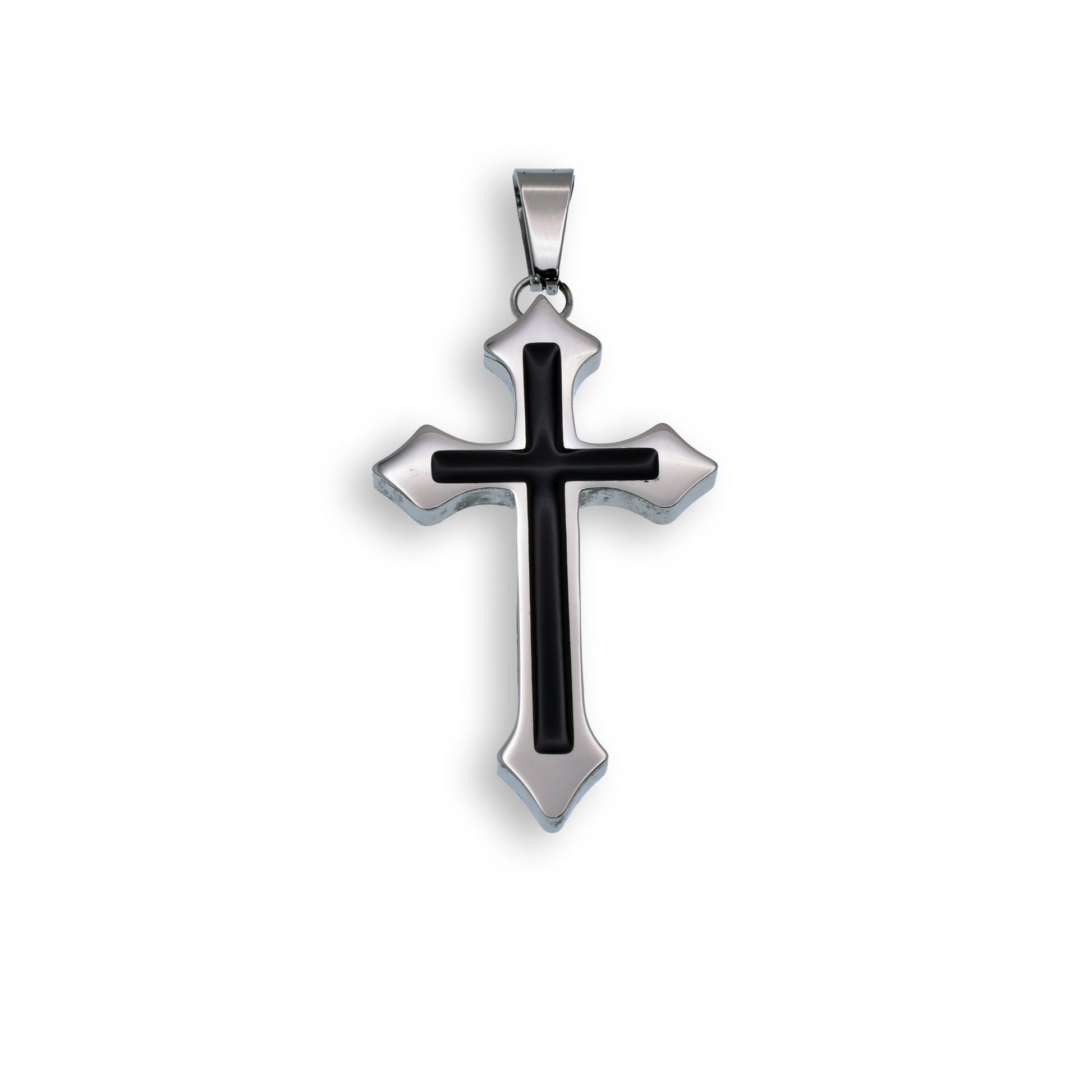 Black Rhodium Plated Stainless Steel Black Inlay Cross Pendant - SSP00511