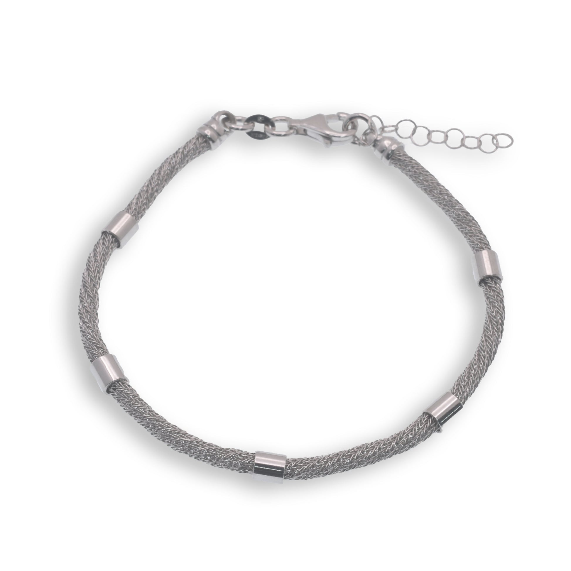 Clearance-Rhodium Plated Italian Braided Mesh With Tube Accent Bracelet- GTB00013RH