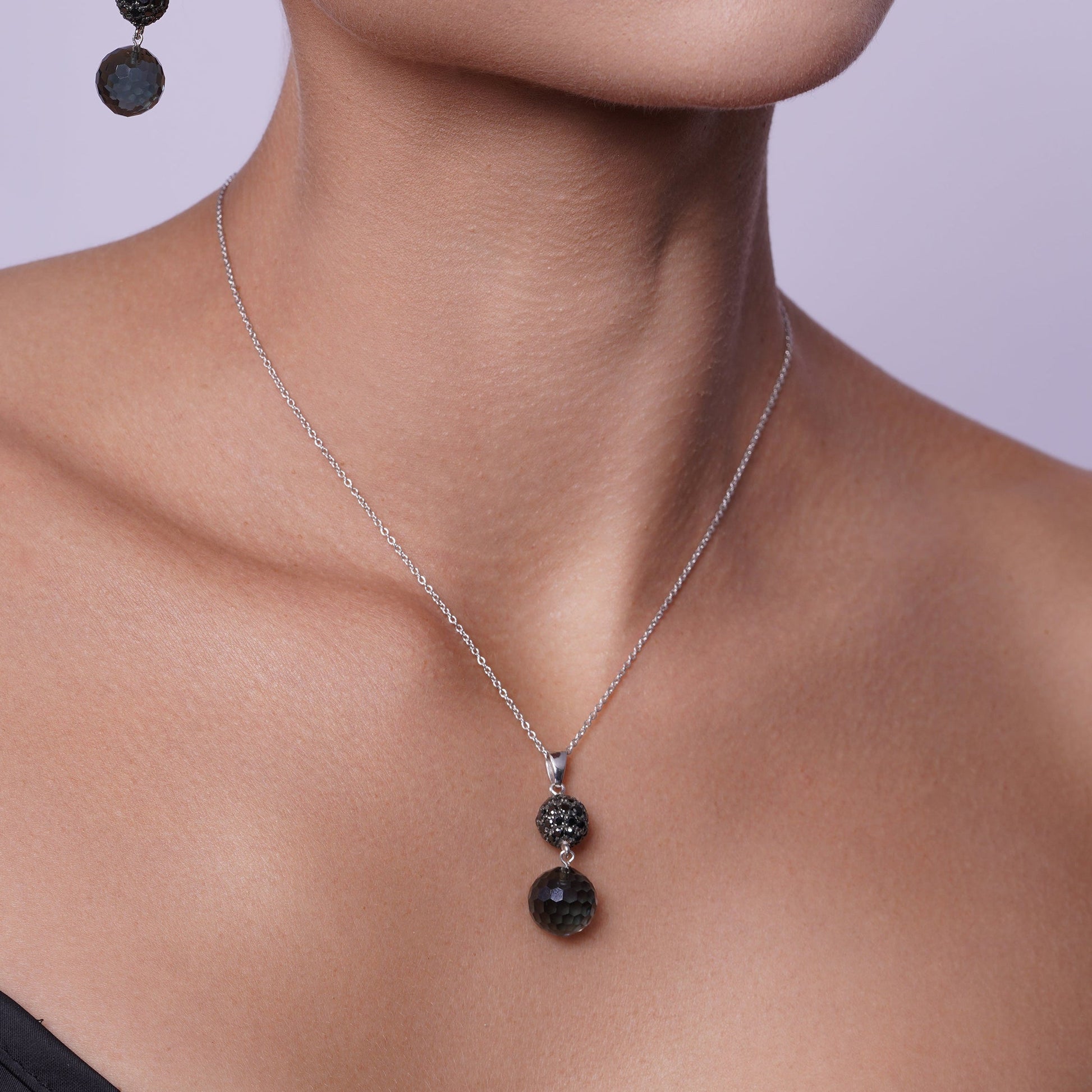 Wholesale Sterling Silver Black and Rhodium Plated Graduated Multicolor Round CZ Dangling Hook Earring and Necklace Set