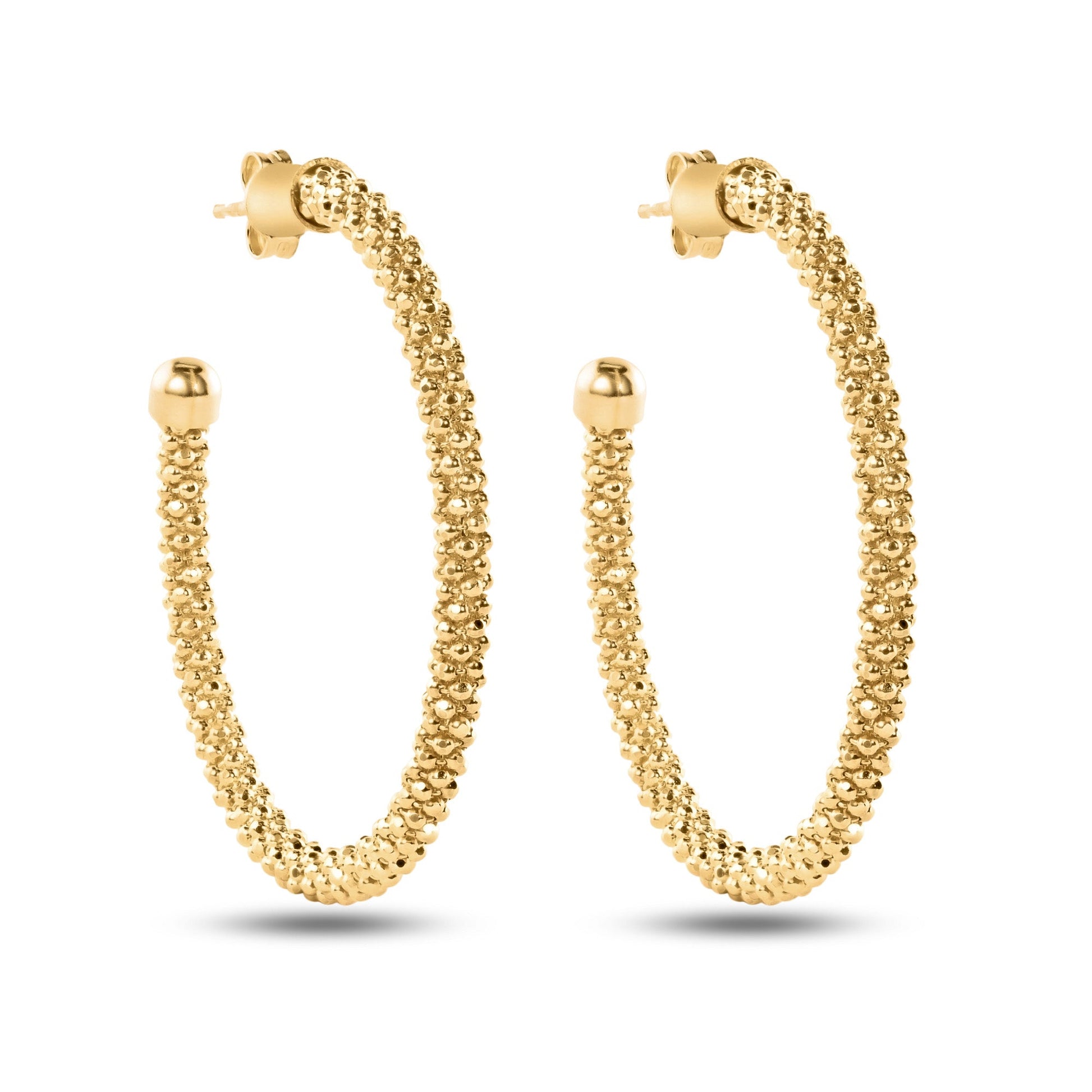 Clearance- Sterling Gold Plated 925 Sterling Silver Beaded Semi Hoop Earrings - ITE00045GP