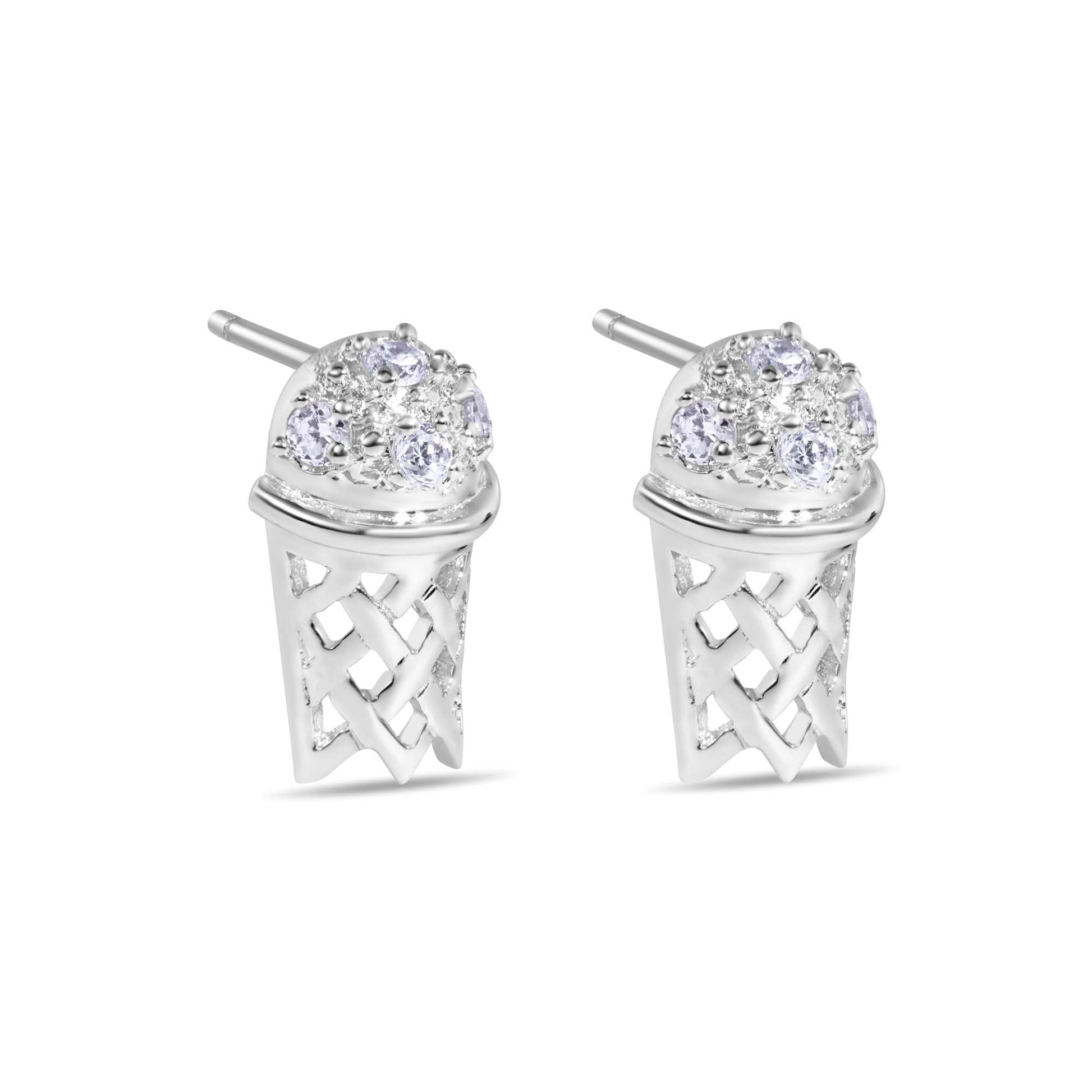 Final Price-Rhodium Plated 925 Sterling Silver Basketball Rim CZ Earrings - STEM135