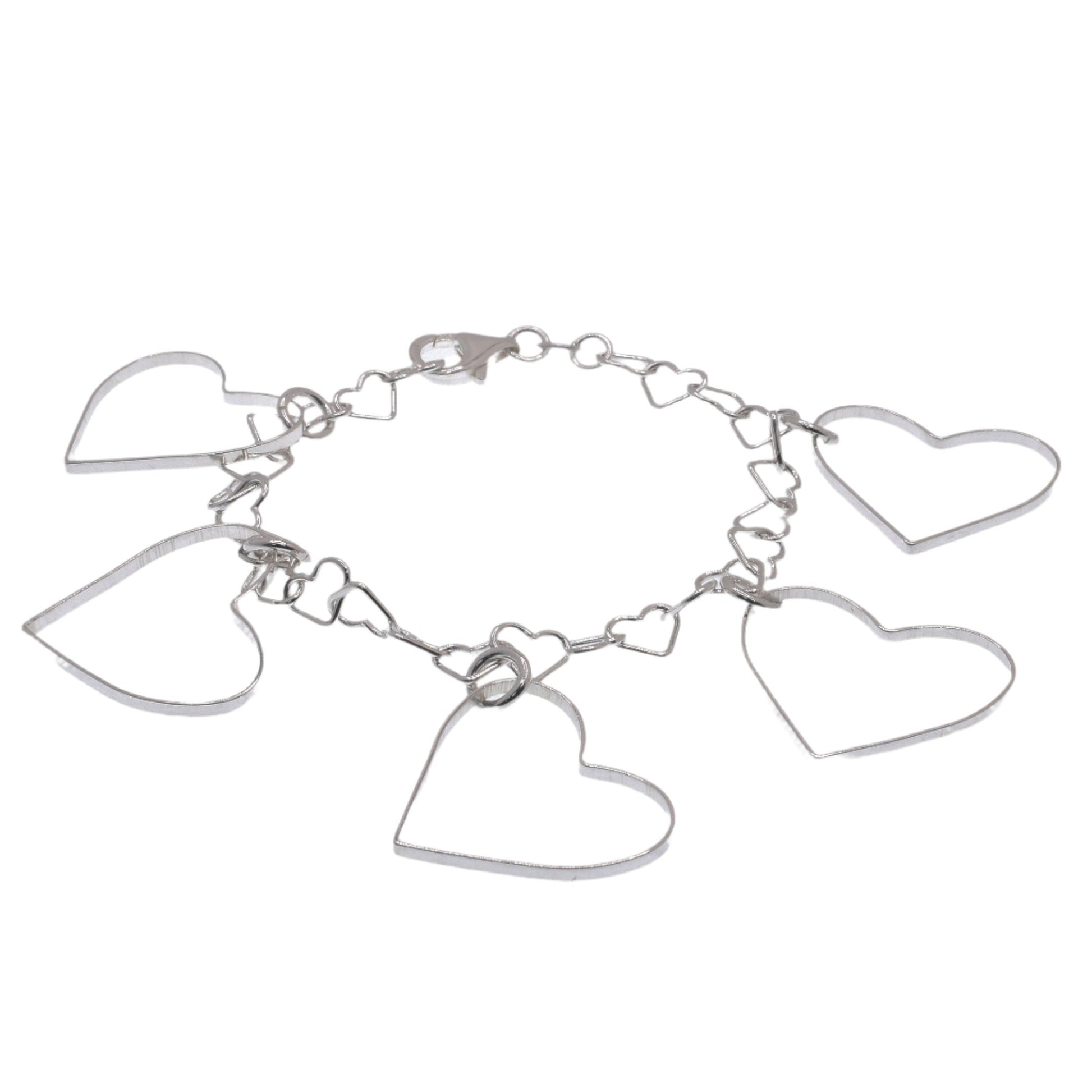 High Polish 925 Sterling Silver Multi Heart Link Bracelet- SPB00025