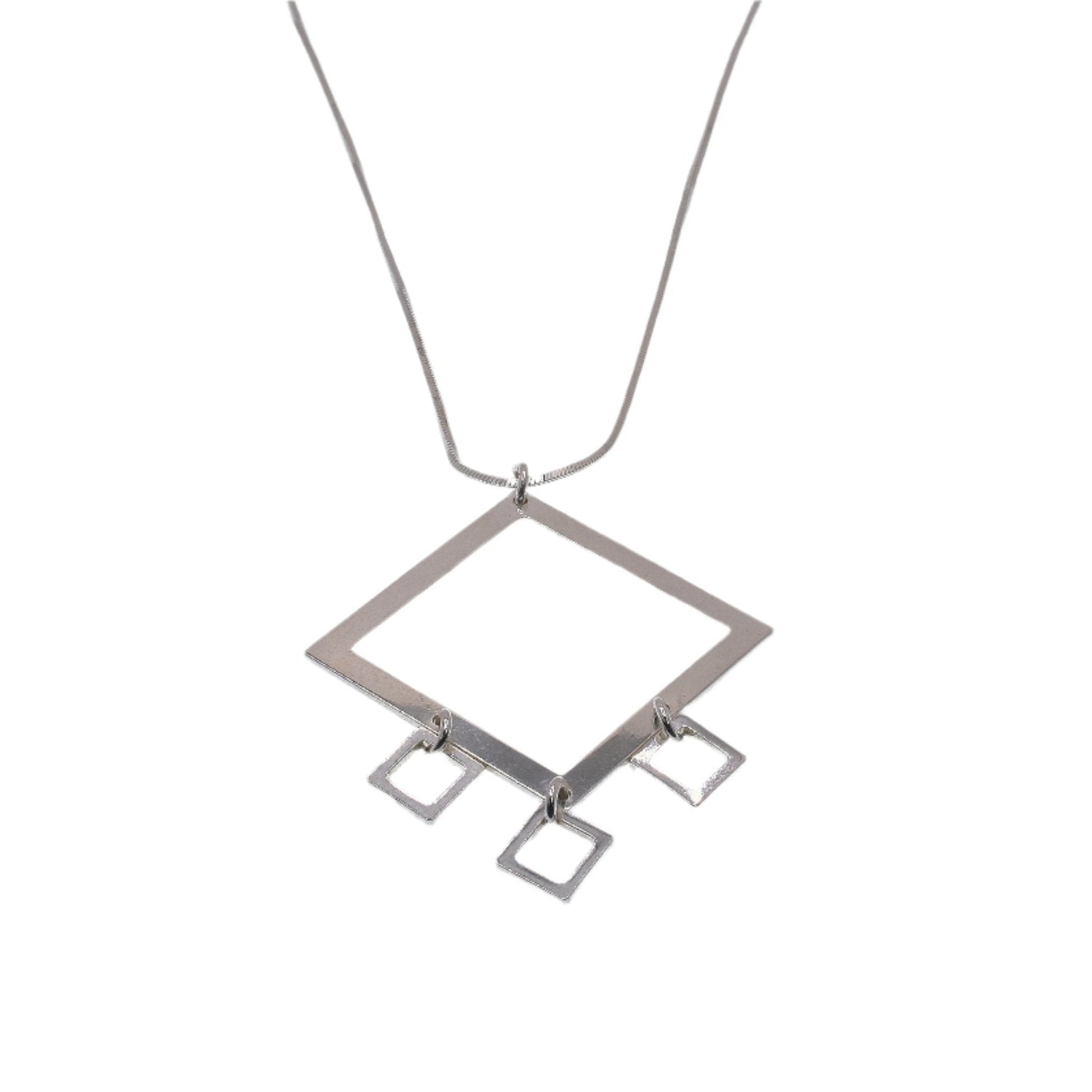 High Polish 925 Sterling Silver Multi Square Dangle Necklace- SPN00016