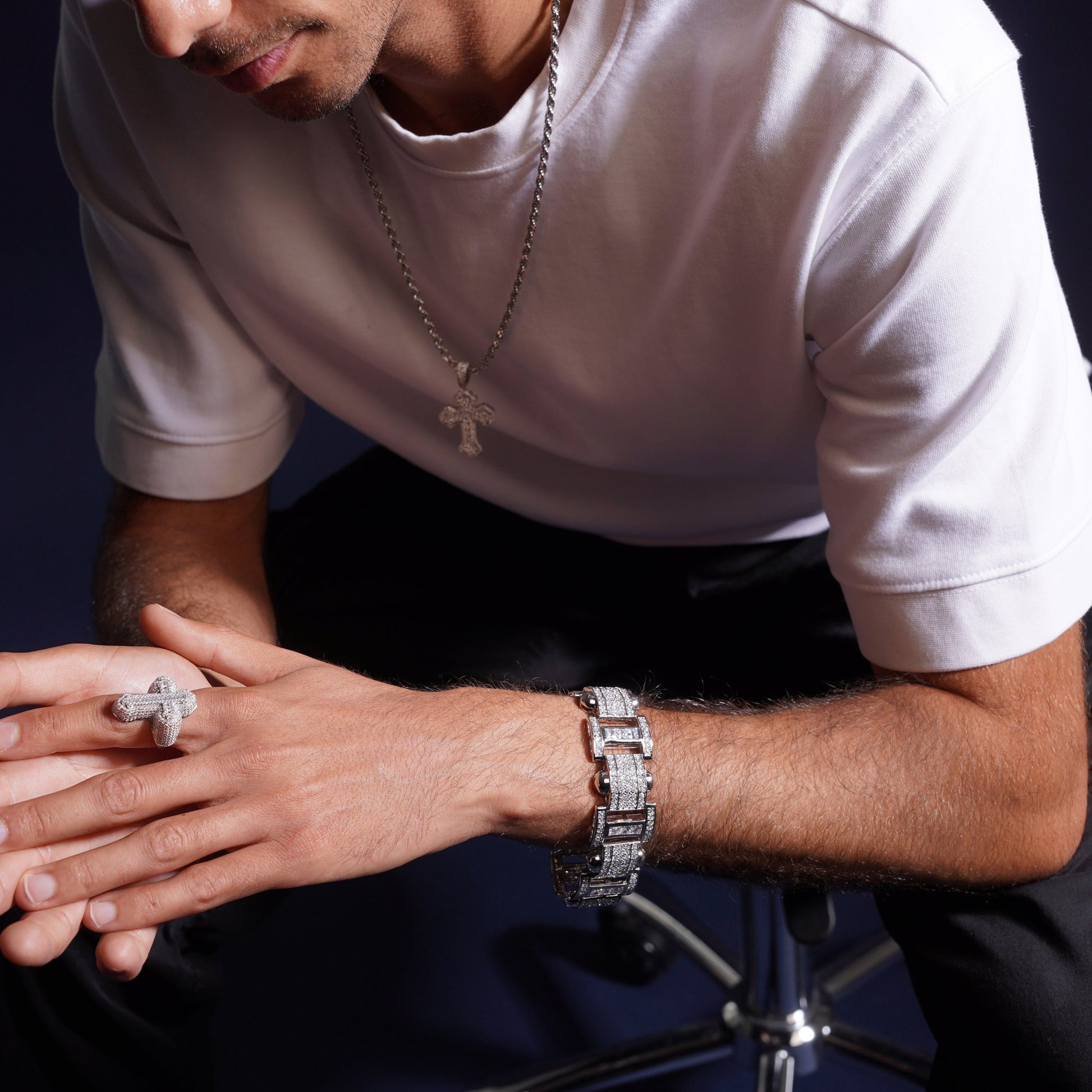 Elevate your style with this premium men's bracelet crafted from rhodium-plated 925 sterling silver. The chunky link design features high-quality cubic zirconia stones that catch the light with every movement. This hip hop-inspired piece offers both substantial weight and exceptional durability, making it a standout addition to any fashion-forward collection.