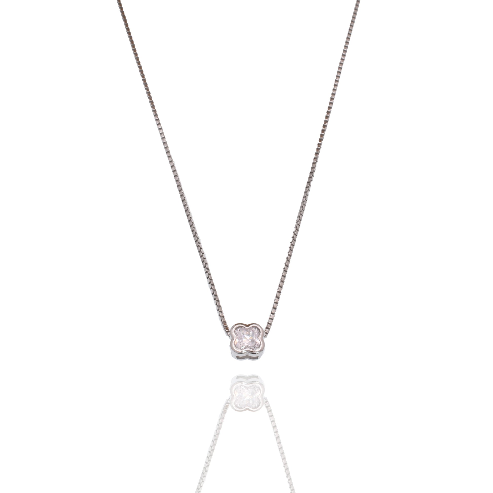 Take a leap of faith with our Rhodium Plated 925 Sterling Silver Four Leaf Clover Necklace. This bold piece features a 5.3mm clover on an adjustable box chain, representing luck and taking chances. Made with high quality materials, this necklace is perfect for the adventurous and daring soul.
