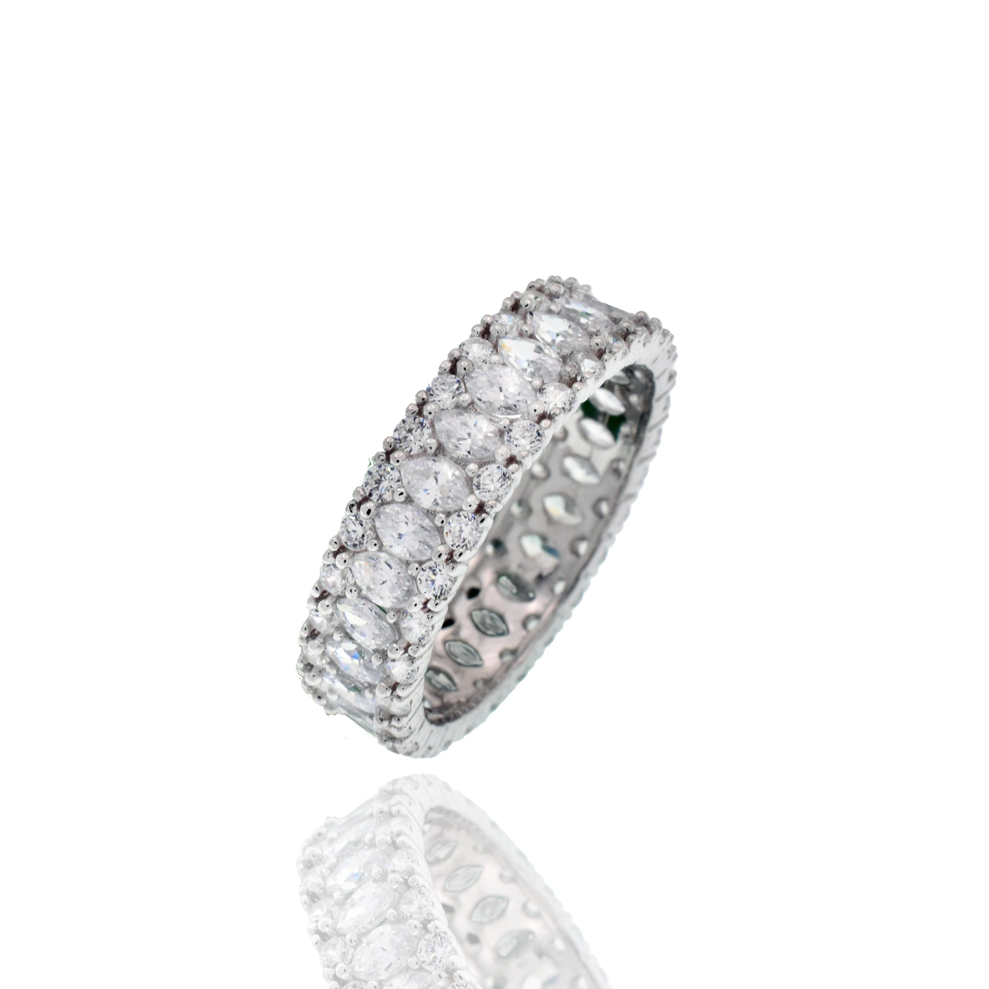 Rhodium Plated 925 Sterling Silver 5.4mm Triple Row Eternity Band Clear CZ Ring - PAR00446