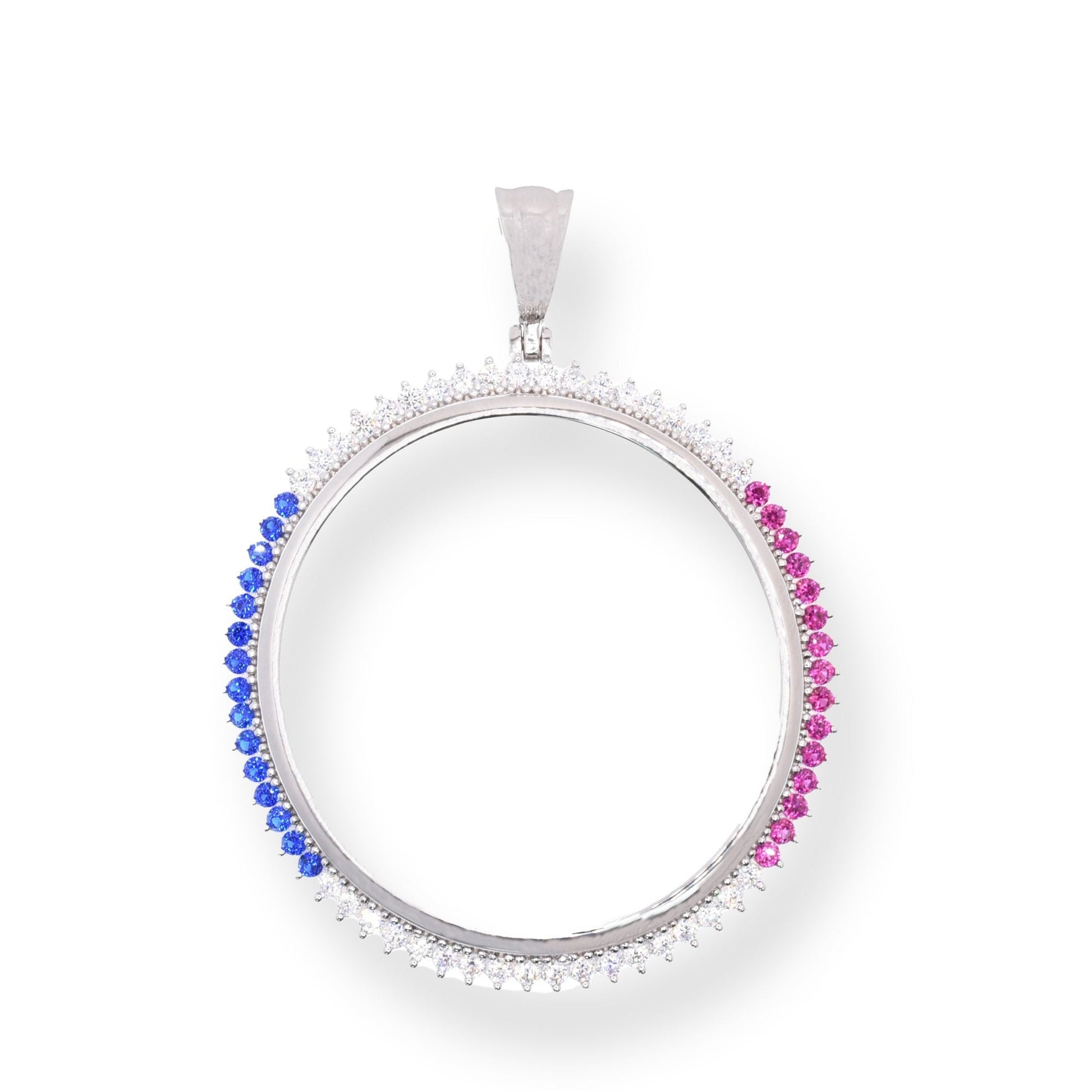 Rhodium Plated 925 Sterling Silver Bezel for Coin Clear Blue and Red CZ Pendant - SLP00443