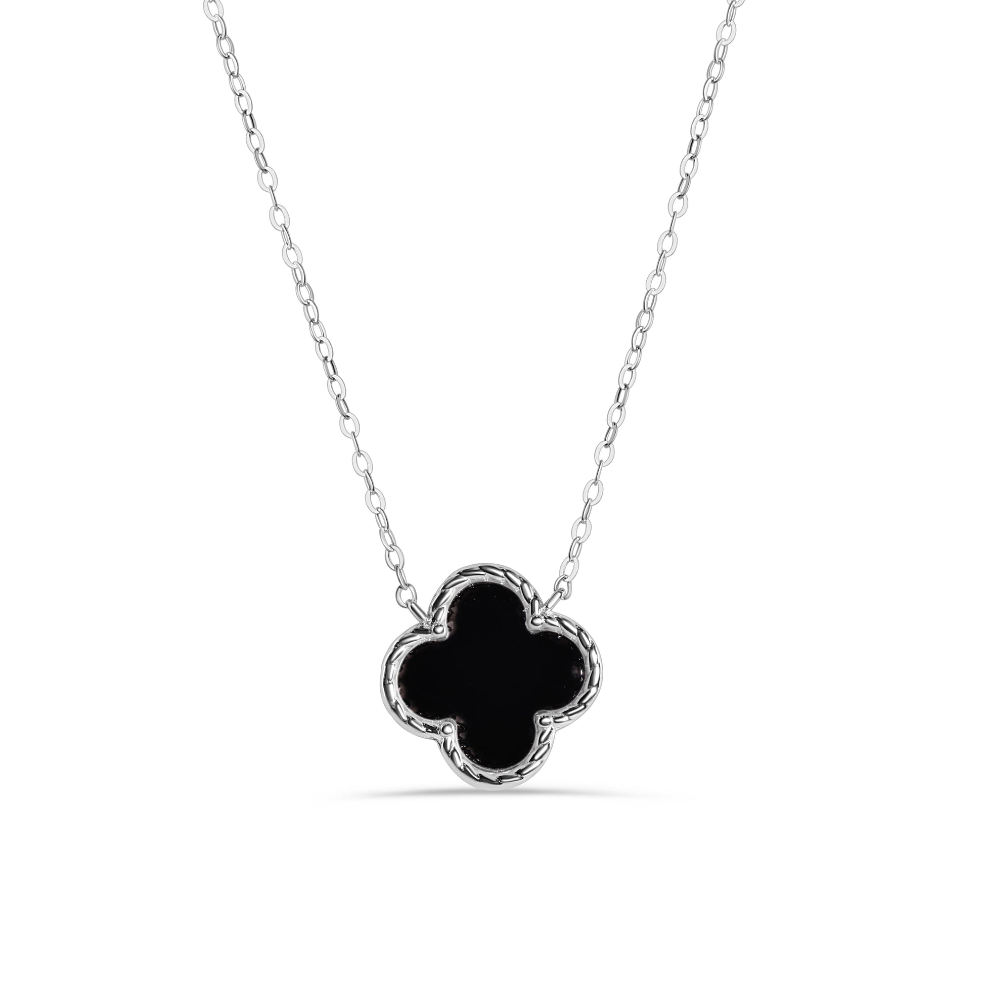 Indulge in luxury with our Rhodium Plated 925 Sterling Silver Black Enamel Four Leaf Clover Adjustable Necklace. Crafted with the finest materials, this piece exudes elegance and sophistication. Let the unique four leaf clover design bring you luck and add a touch of glamour to any outfit.