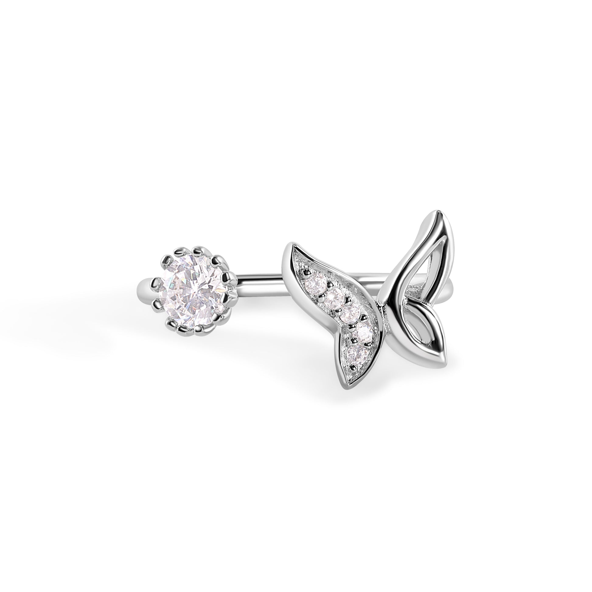 Rhodium Plated 925 Sterling Silver Butterfly and Flower Clear CZ 1.3mm Open Ended Ring - BGR01123