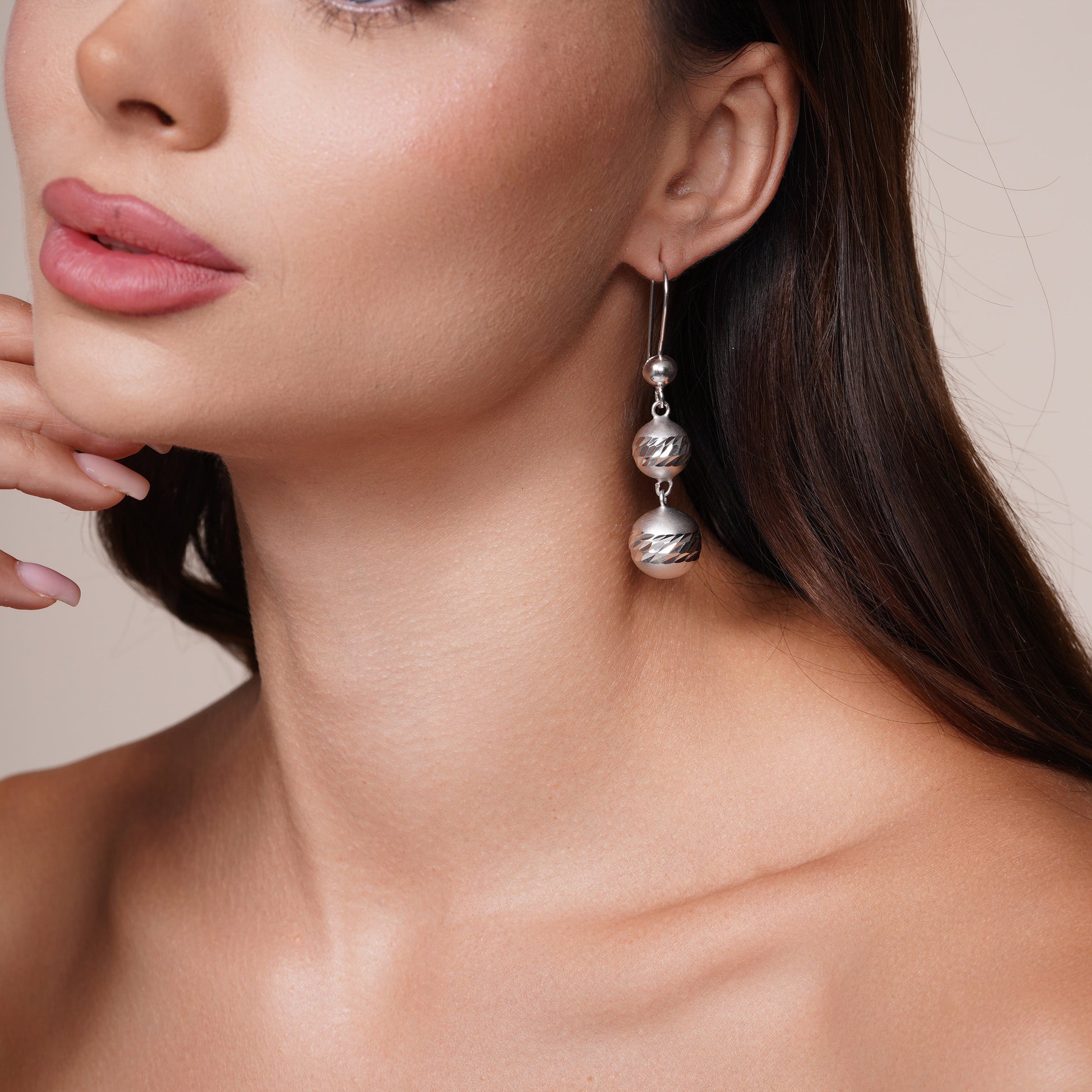 Rhodium Plated 925 Sterling Silver DC Triple Beaded Earring-DSE00074