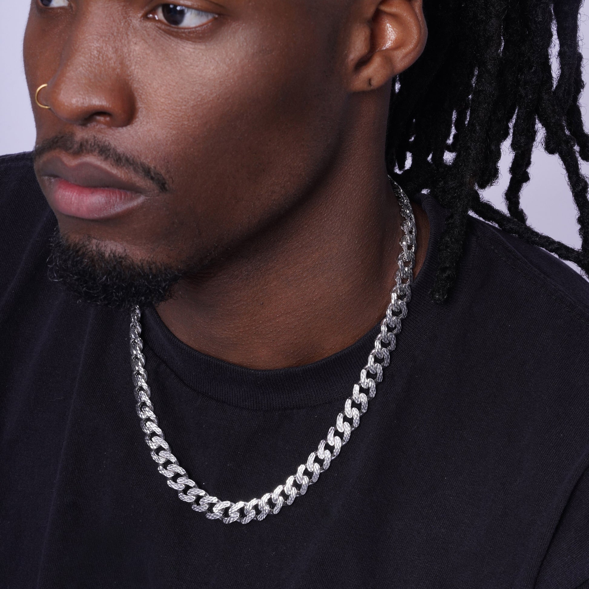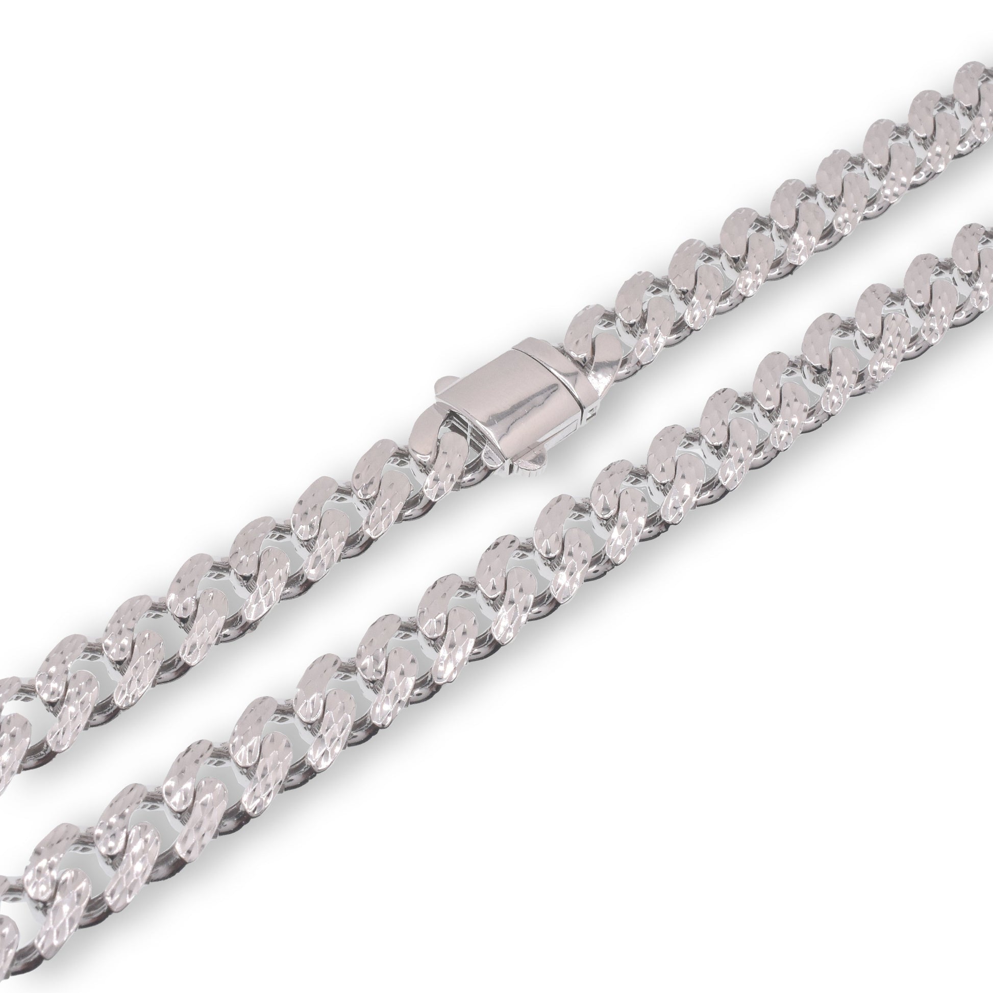 Elevate your style with this Rhodium Plated 925 Sterling Silver Miami Curb Link Chain. Featuring a 10.5mm diamond-cut design, it offers a brilliant shine and durable finish that resists tarnish. Perfect for making a bold statement or layering with other pieces, this chain combines classic craftsmanship with modern appeal.
