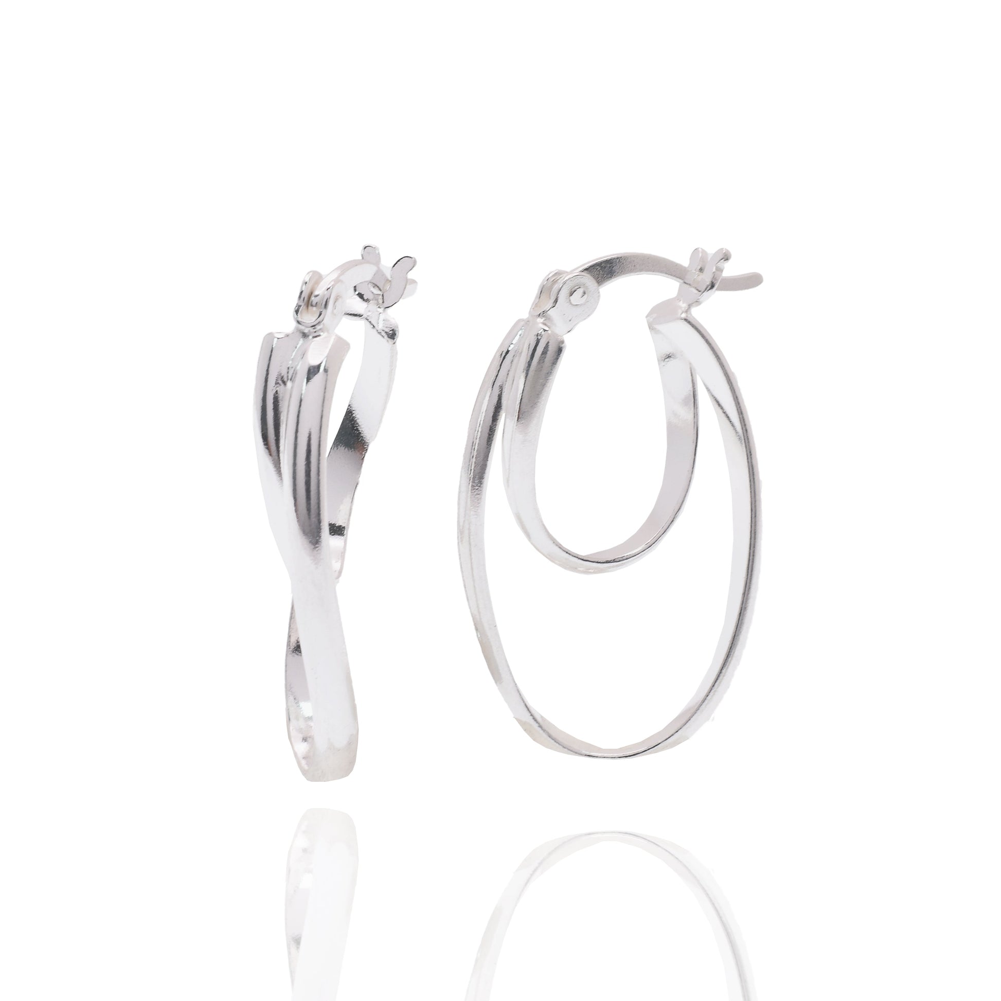 Rhodium Plated 925 Sterling Silver Double Oval Hoop 16.2mm x 24mm Earring - APE00012