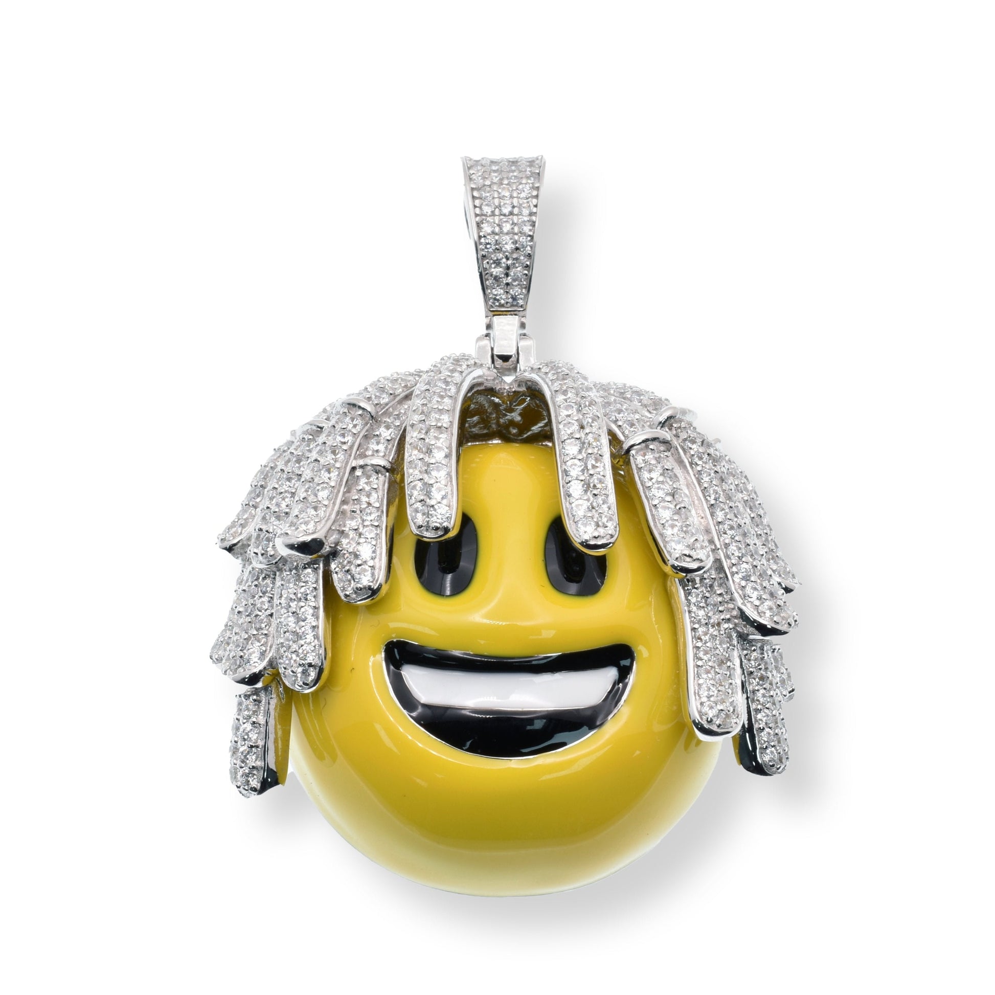 Add a touch of playful charm and vibrant color to your look with this rhodium plated pendant. Crafted from 925 sterling silver, it features a smiling face with dreadlocks and sparkling clear CZ accents. At 35.2mm x 31mm, it's the perfect unique addition to any outfit. Rock your style with this quirky smiley pendant!