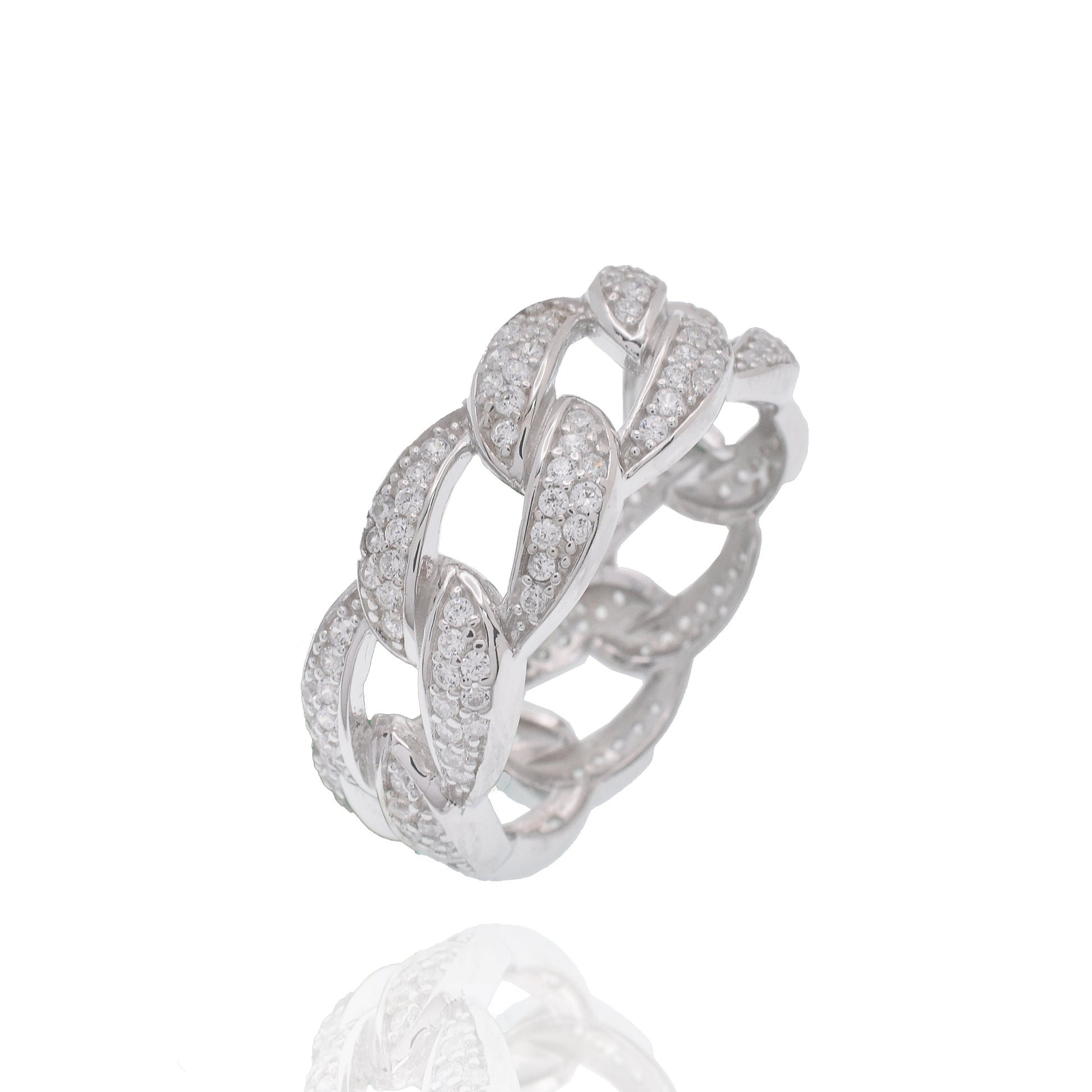 Rhodium Plated 925 Sterling Silver Iced Cuban Link Clear CZ 8.7mm Ring - PAR00449