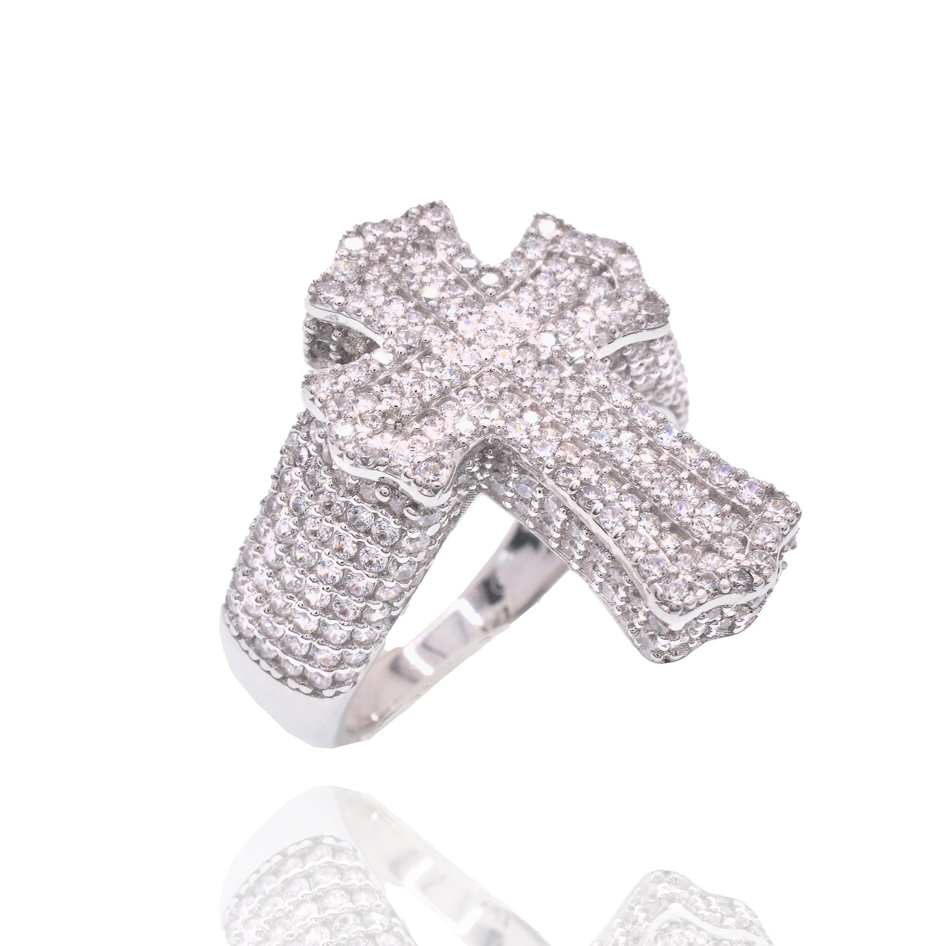 Rhodium Plated 925 Sterling Silver Men's Iced Out Cross Pave CZ Statement Ring - PAR00442