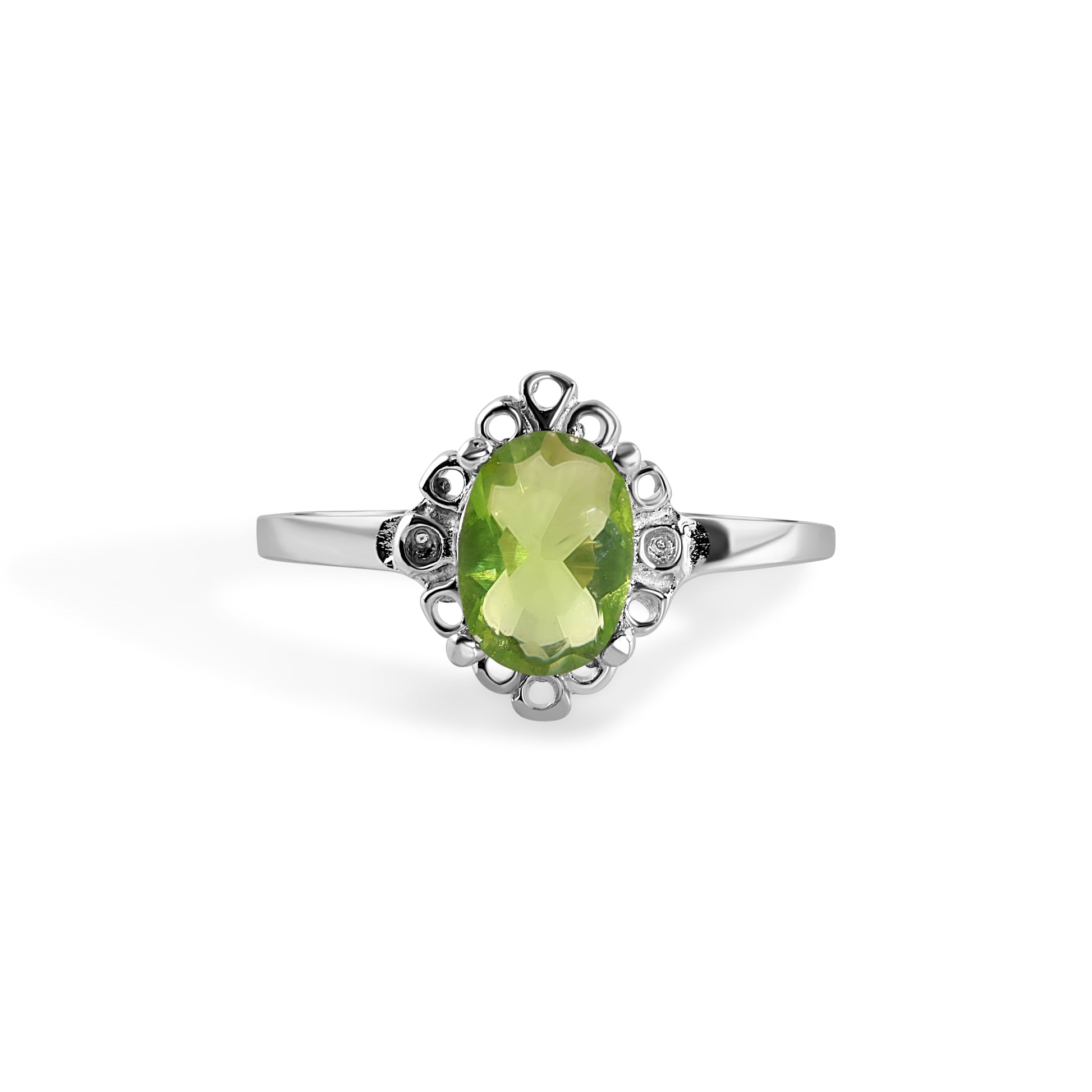 Rhodium Plated 925 Sterling Silver Oval Filagree Birthstone Ring- SPR00009