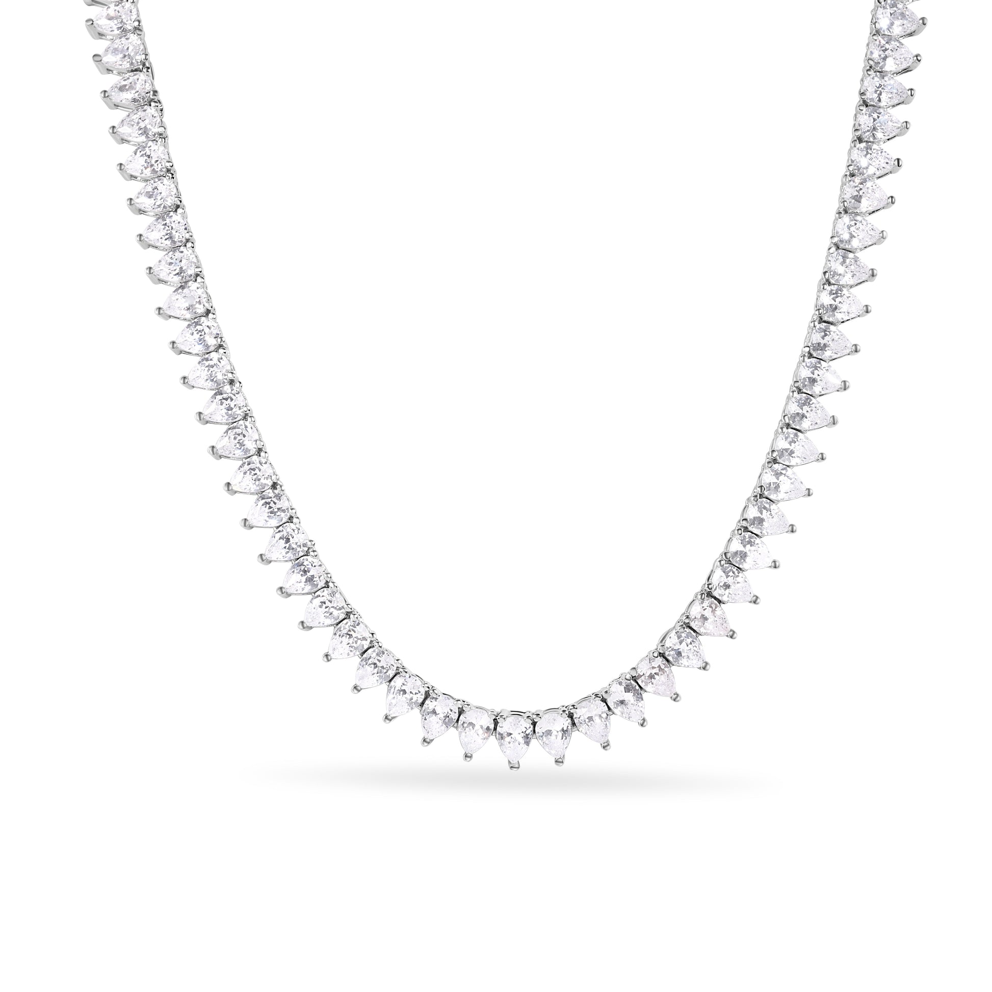Rhodium Plated 925 Sterling Silver Pear Cut Clear CZ 5mm Tennis Necklace - GMN00221