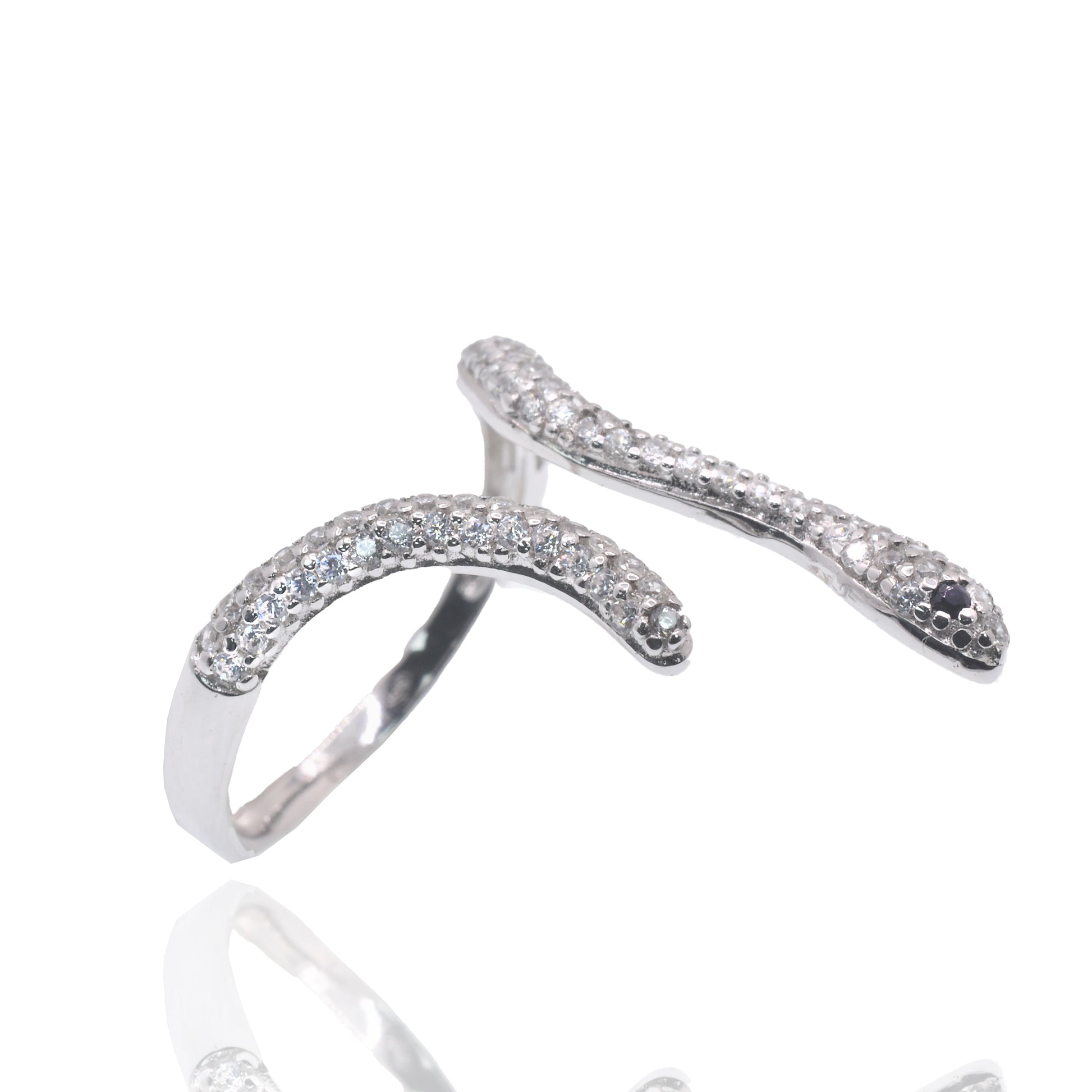 Rhodium Plated 925 Sterling Silver Snake Clear CZ Ring - PAR00040
