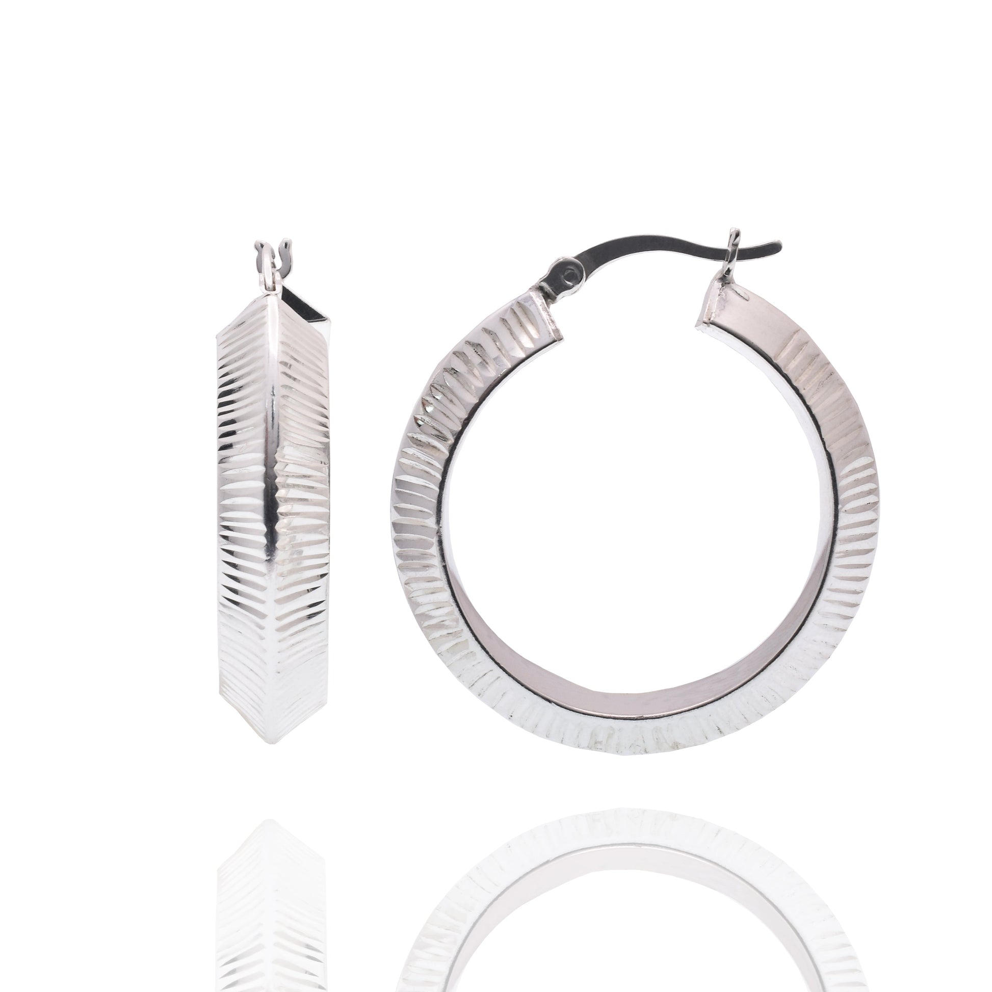 Rhodium Plated 925 Sterling Silver Textured Ribbed 23mm Hoop Earring - APE00011
