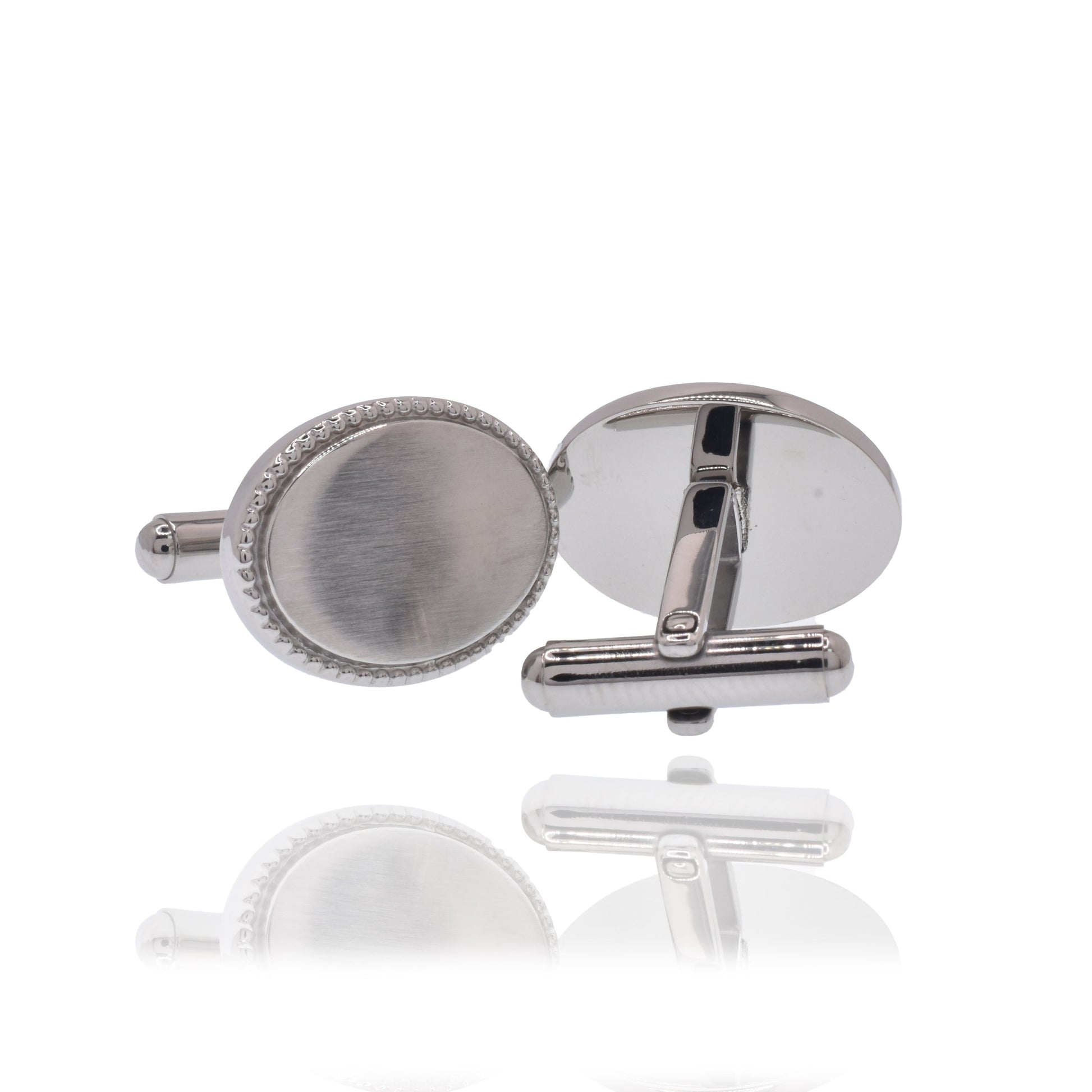 Rhodium Plated Stainless Steel Beaded Oval 15mm x 20mm Bullet Back Cufflink - SCU000017