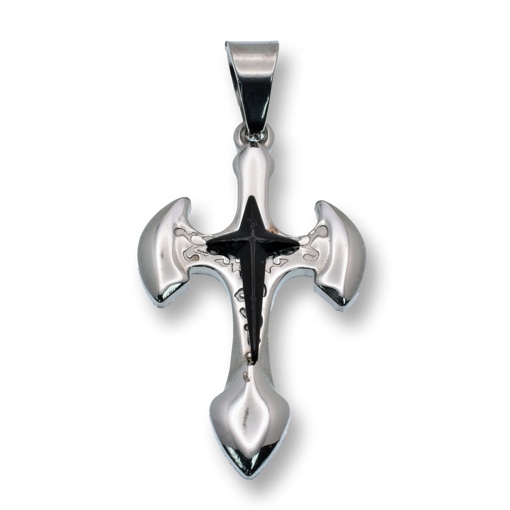 Rhodium Plated Stainless Steel Gothic Cross 28.5mm x 48mm Pendant - SSP00257