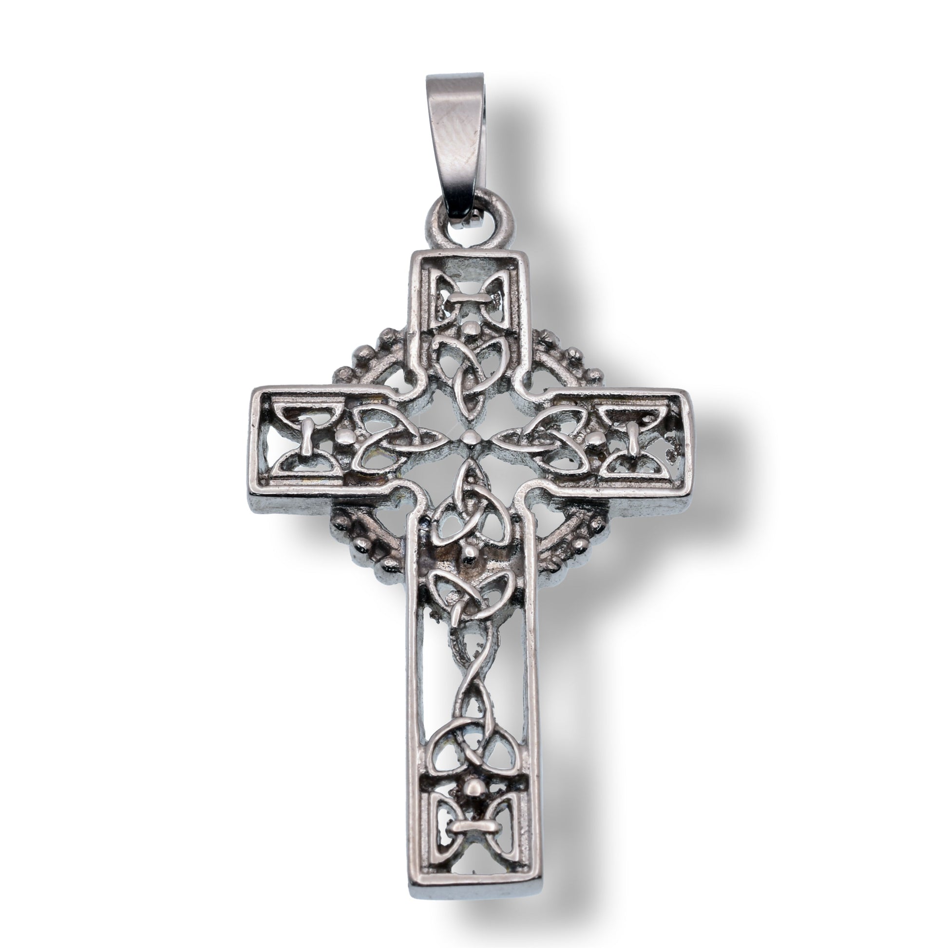 Rhodium Plated Stainless Steel Intricate Celtic Cross 26mm x 37.9mm Pendant - SSP00279