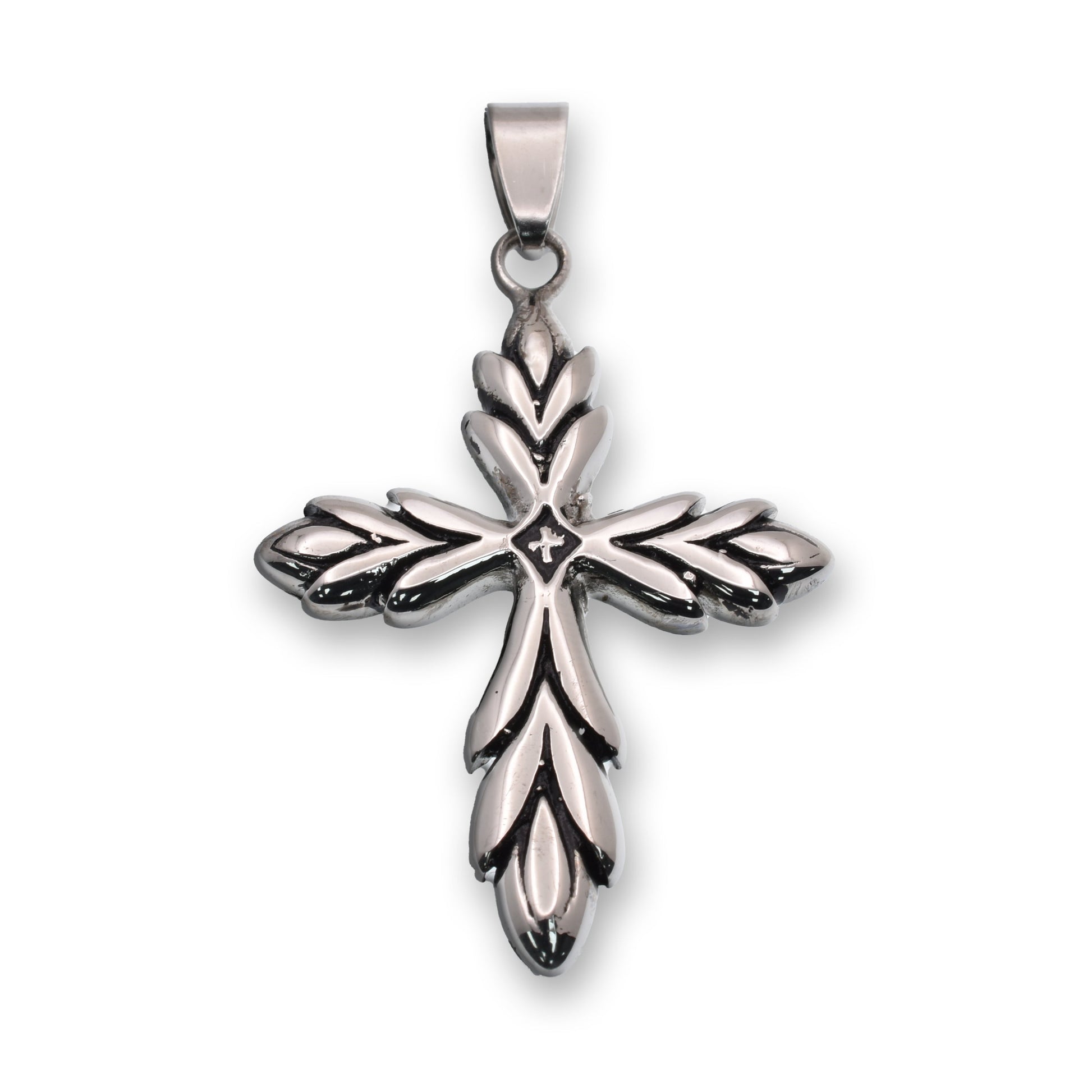 Rhodium Plated Stainless Steel Olive Branch Cross 30.5mm x 40mm Pendant - SSP00281
