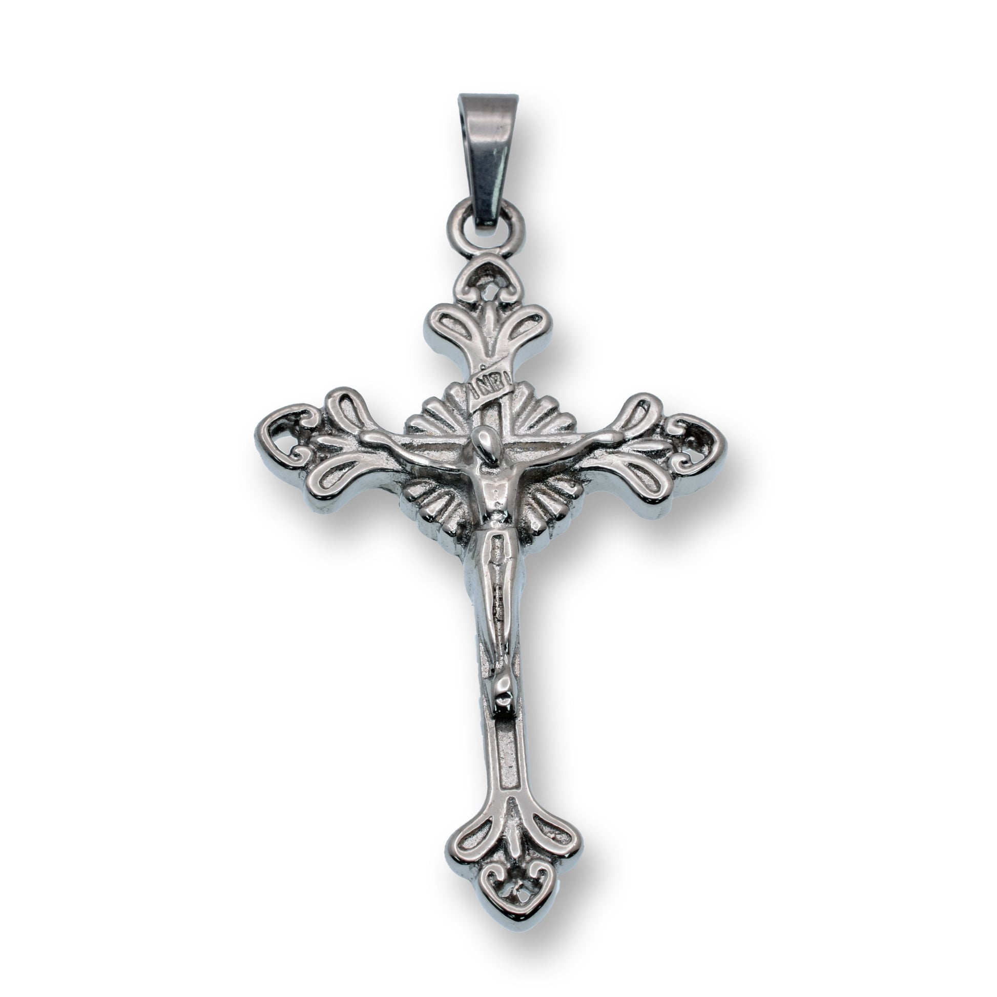 Rhodium Plated Stainless Steel Ornate Cross 27.5mm x 43.4mm Pendant - SSP00282