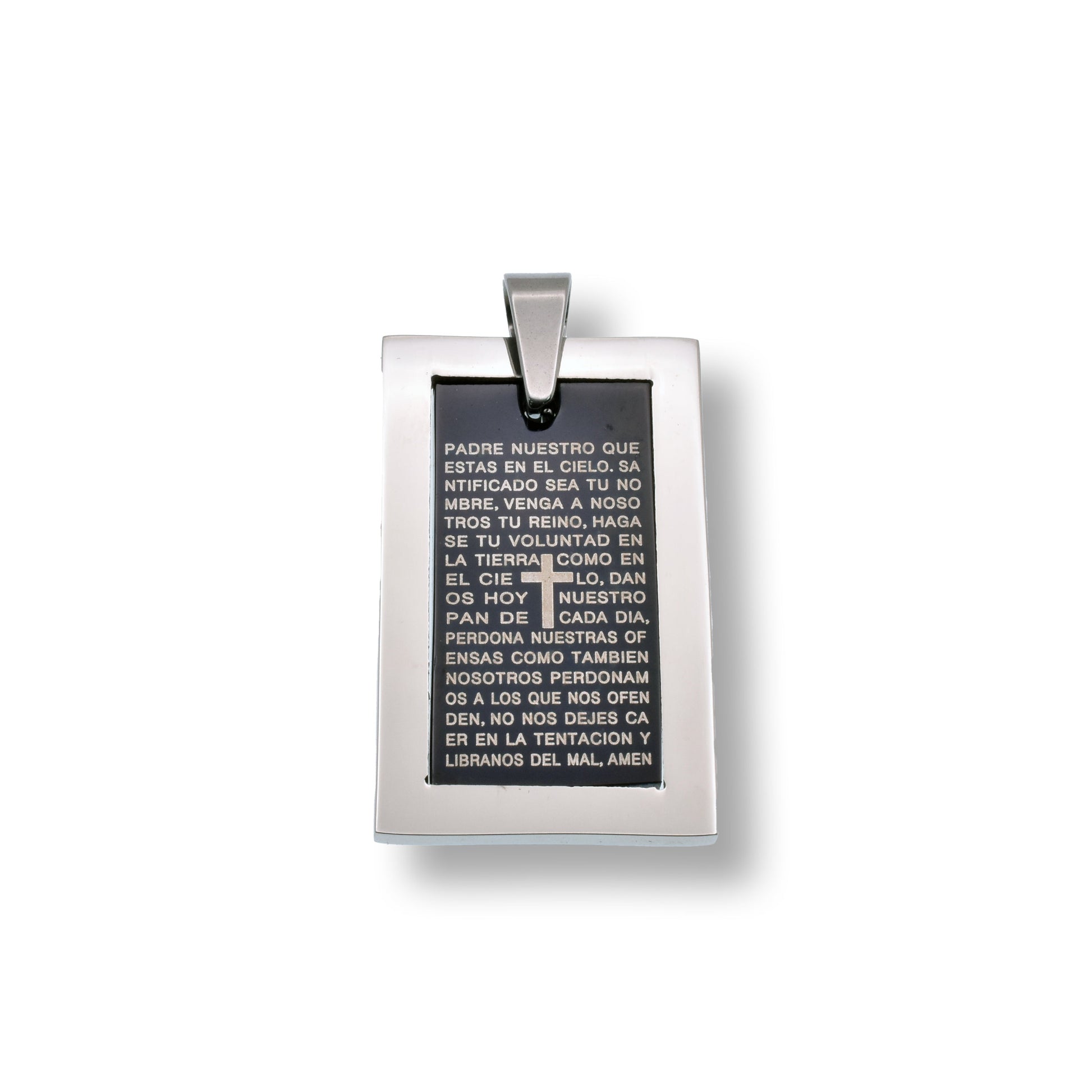 Rhodium Plated Stainless Steel Rectangular Prayer Black Enamel Pendant - SSP00259