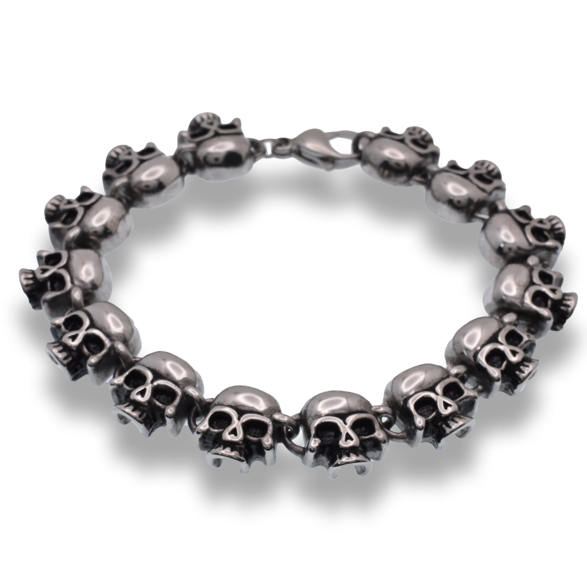Rhodium Plated Stainless Steel Skull Bracelet - SSB00187