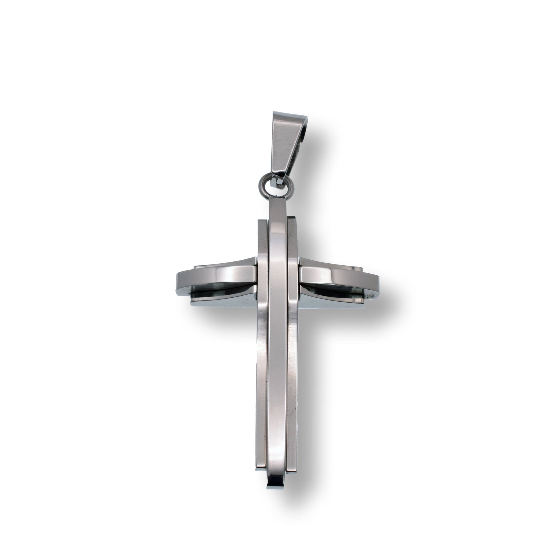 Rhodium Plated Stainless Steel Stylish Cross Pendant - SSP00176