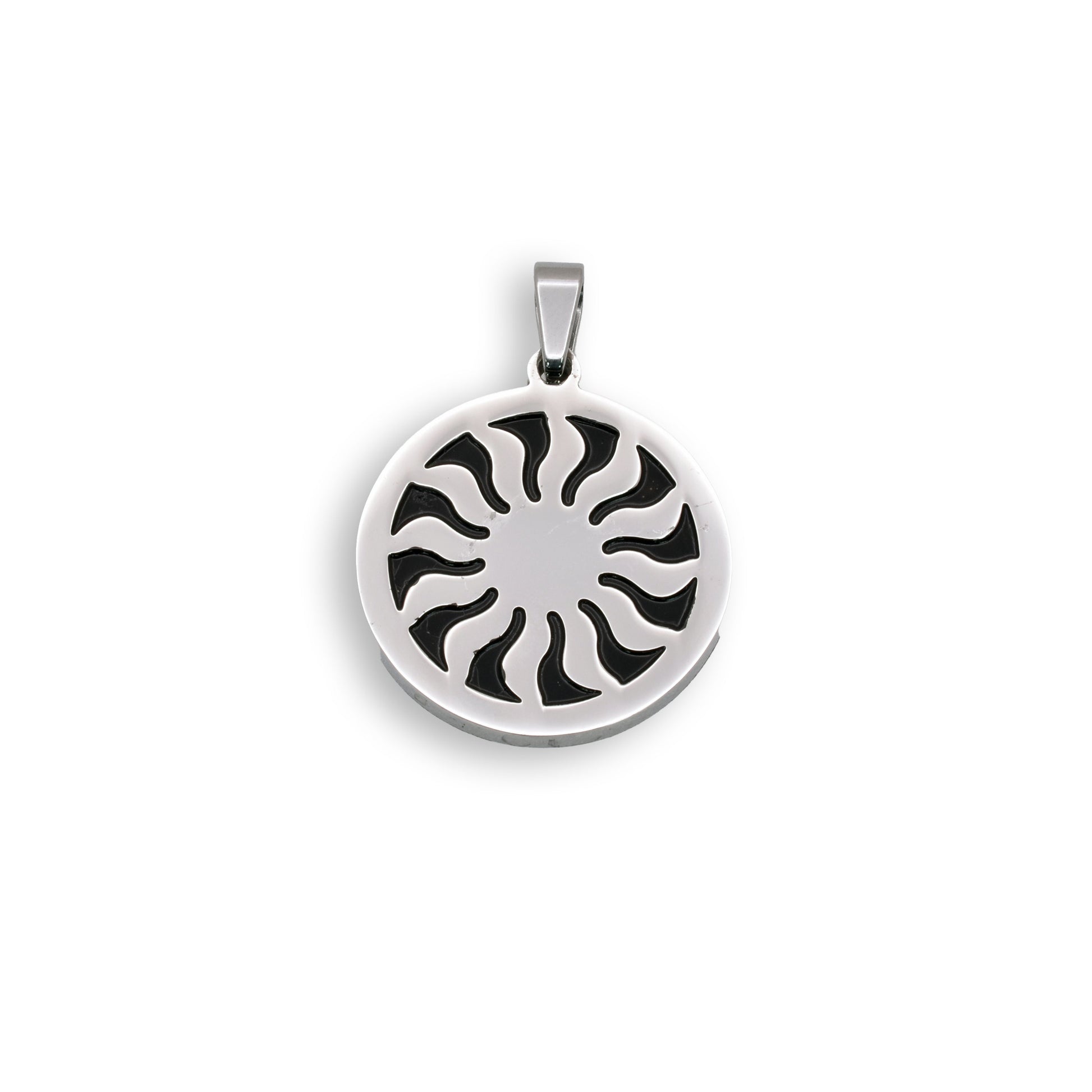 Rhodium Plated Stainless Steel Sun & Black Enamel Pendant - SSP00060