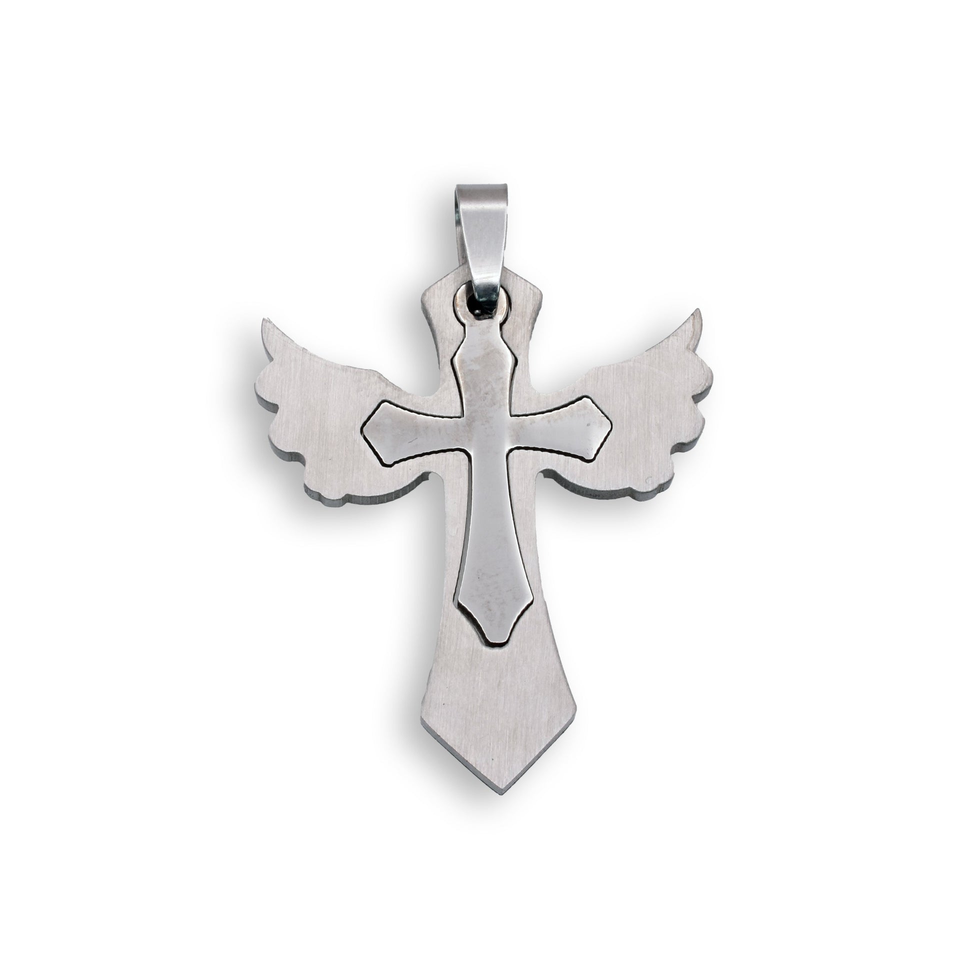Rhodium Plated Stainless Steel Wing Cross Inlay Pendant - SSP00033