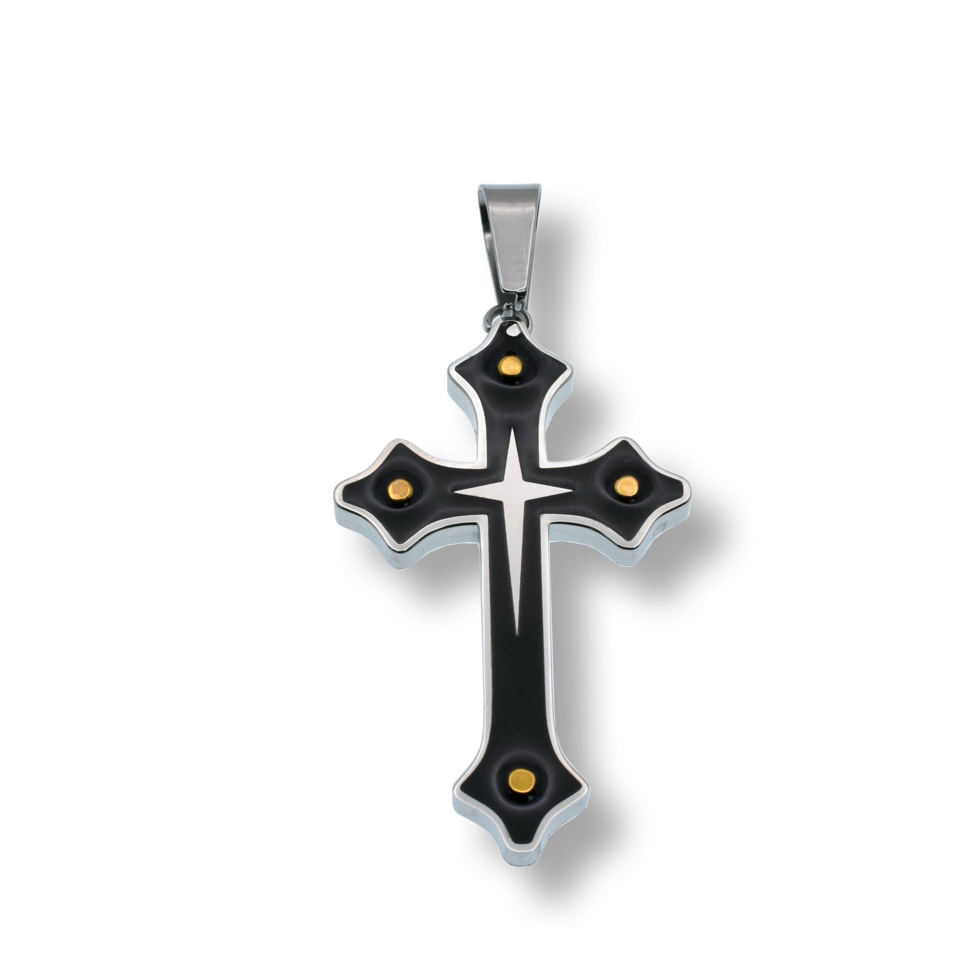 Rhodium Plated Stainless Steel Syriac Cross Black Enamel Pendant - SSP00117