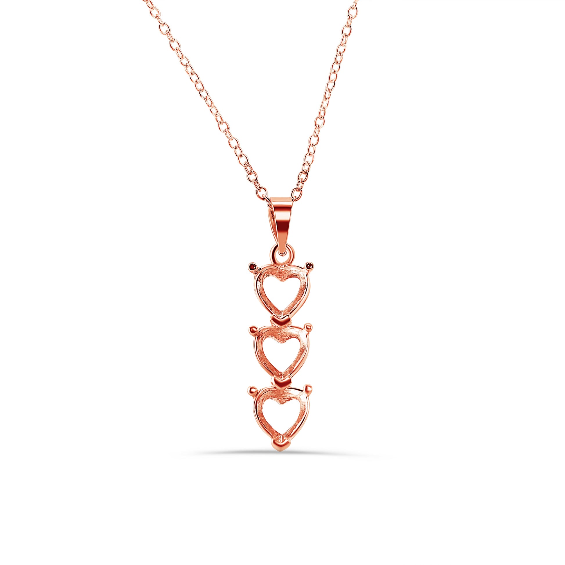 Rose Gold Plated 925 Sterling Silver Personalized 3 Heart Drop Mounting Necklace - BGP00780RGP