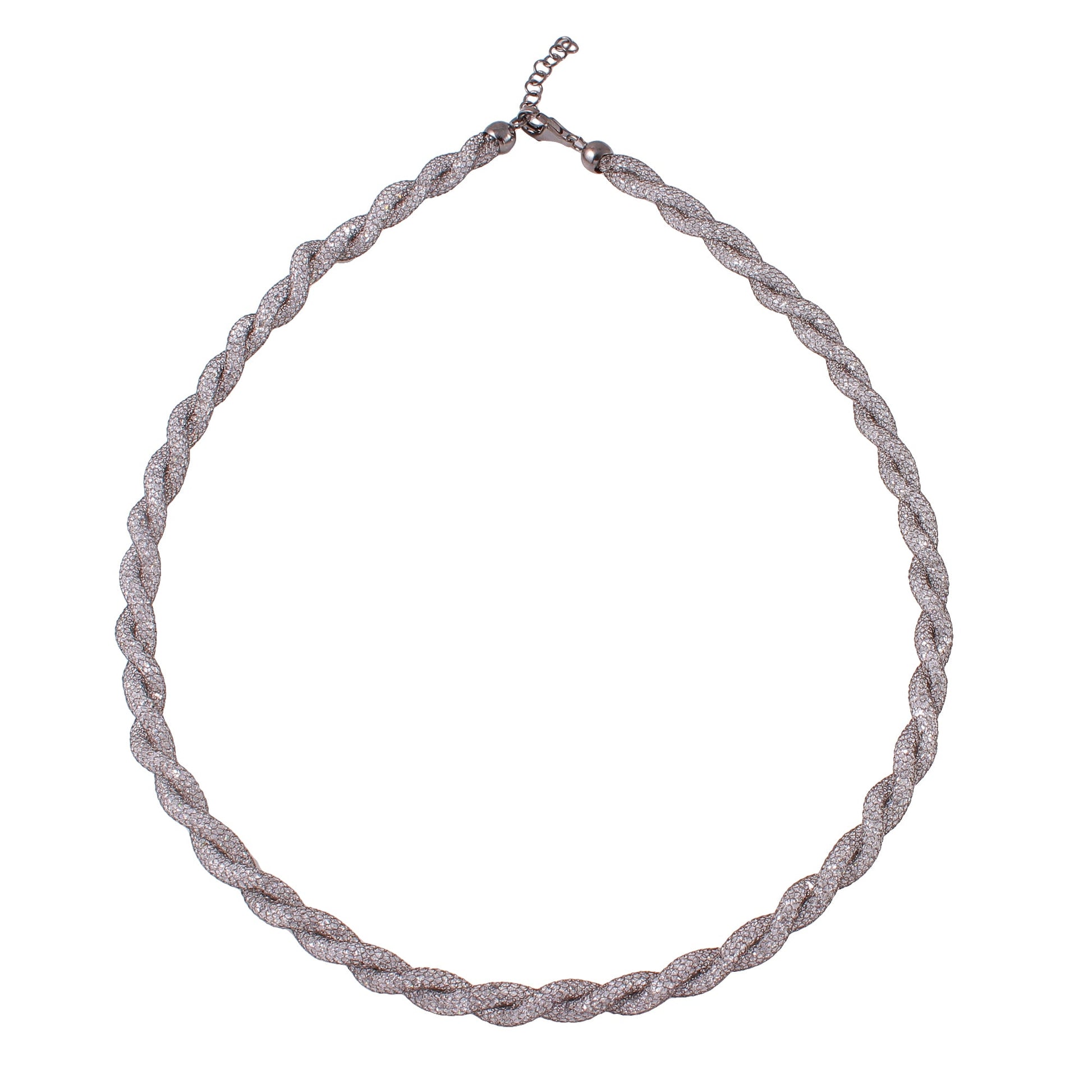 An exquisite piece of jewelry, this Silver 925 Black Rhodium Plated Rope Mesh Necklace Inlayed with Swarovski Crystals will make a stunning addition to any look. Delicately crafted for an elegant, eye-catching effect, this necklace is perfect for special events or everyday wear. For sale and resale.