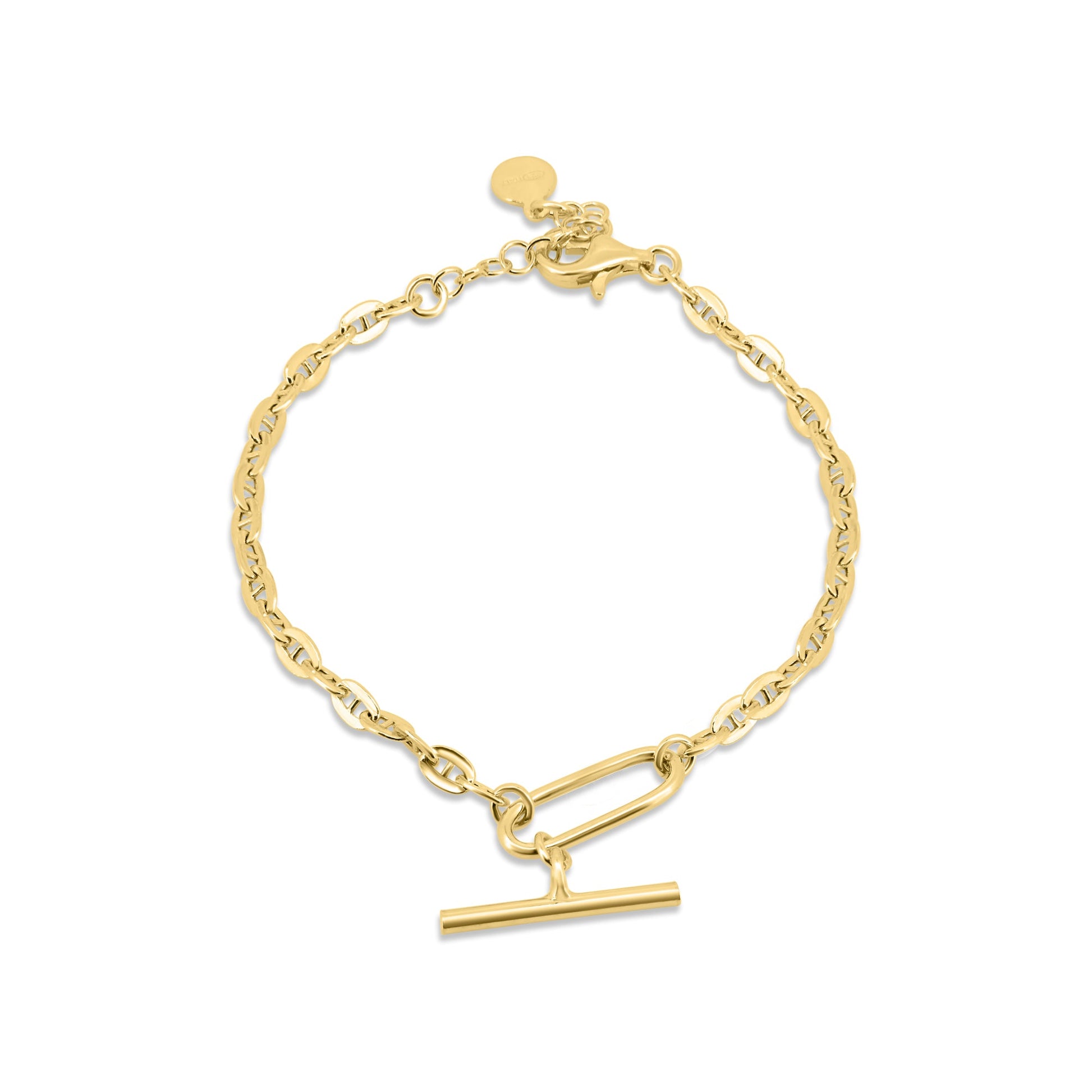 Gold Plated 925 Sterling Silver Flat Marina Paperclip Bar Adjustable Bracelet - ITB00340-GP