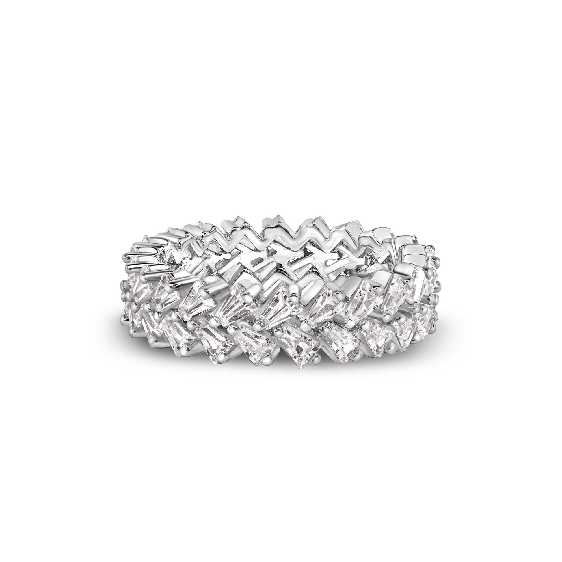 Indulge in luxury with our Silver 925 Nickel Free Rhodium Plated Double Eternity Band Baguette CZ Ring. Crafted with top-quality materials, this ring features a timeless design that exudes elegance. The nickel-free rhodium plating ensures a lasting shine, while the baguette CZ stones add a touch of sophistication. Elevate your style with this exclusive piece.
