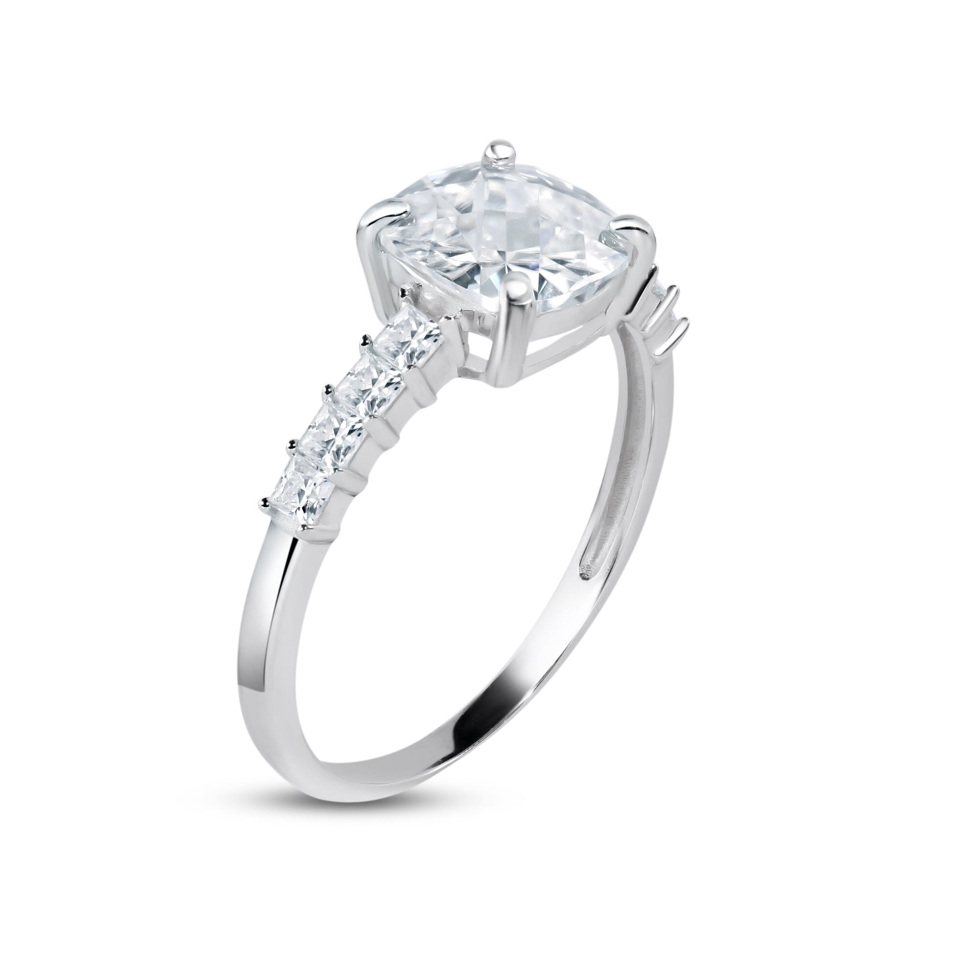 925 Sterling Silver Rhodium Moissanite Square Stone Engagement Ring - MGMR00011